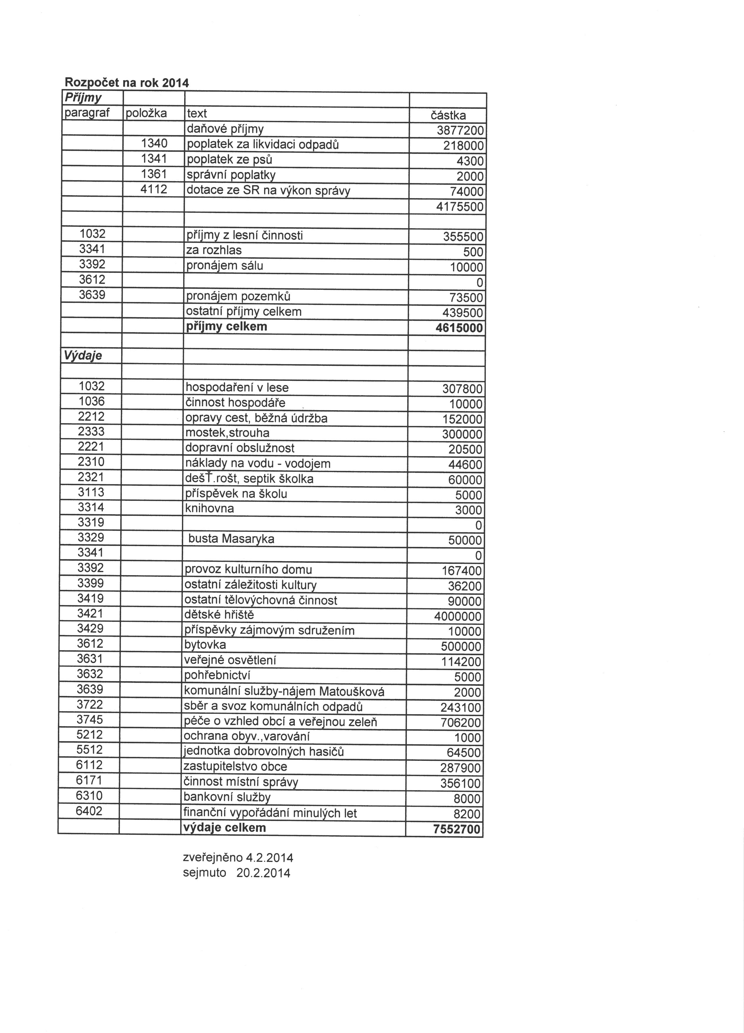 Návrh rozpočtu na rok 2014