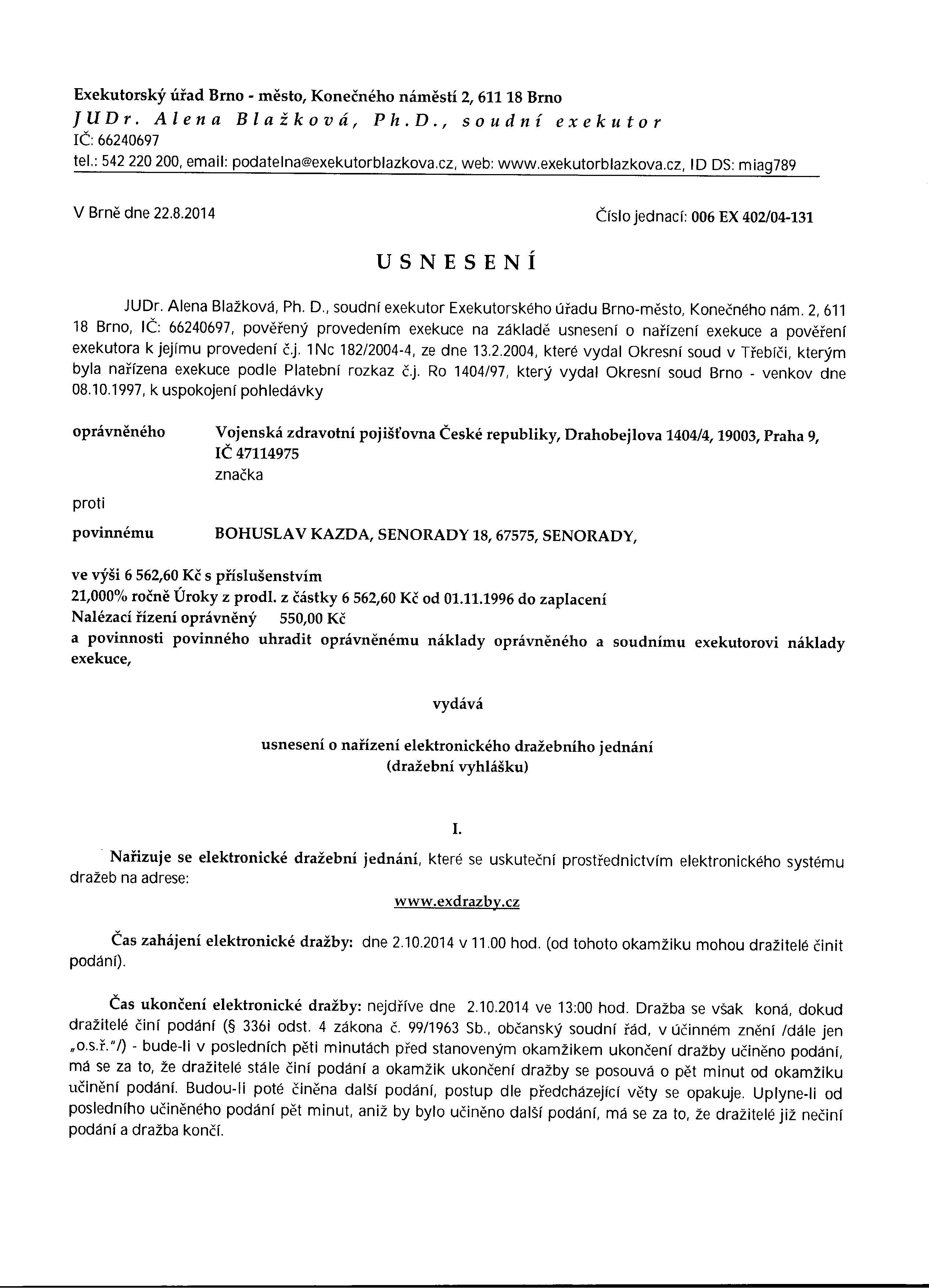 Dražební vyhláška - Kazda B.