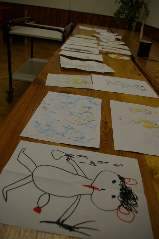 Koutek vystřihovánek kde se lepil řetěz z barevných papírů
