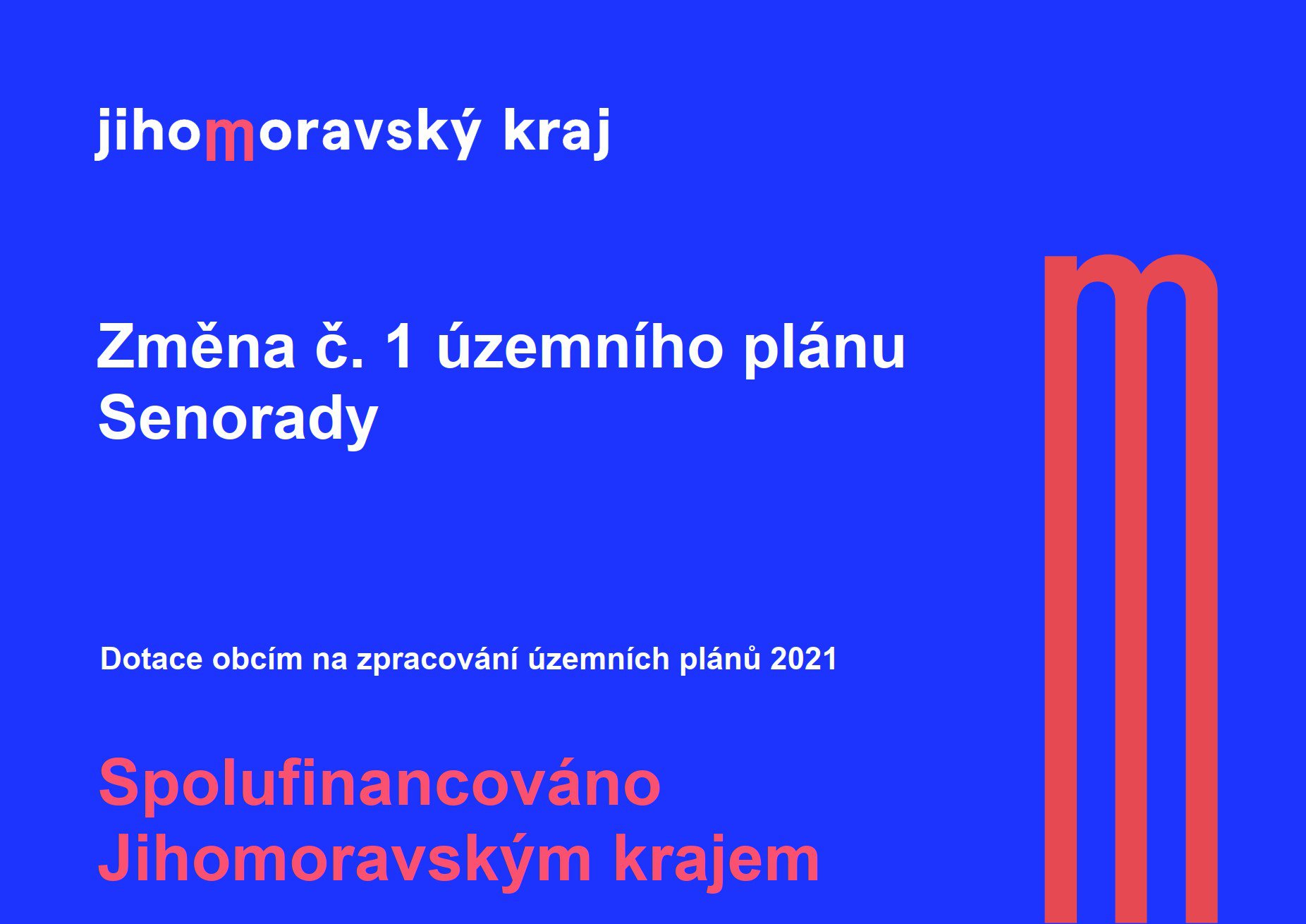 Dne 21.10 2023 nabyla účinnosti Změna č.1 územního plánu obce Senorady, jejíž pořízení bylo spolufinancováno Jihomoravským krajem. V příloze zveřejňujeme plakát publicity projektu.