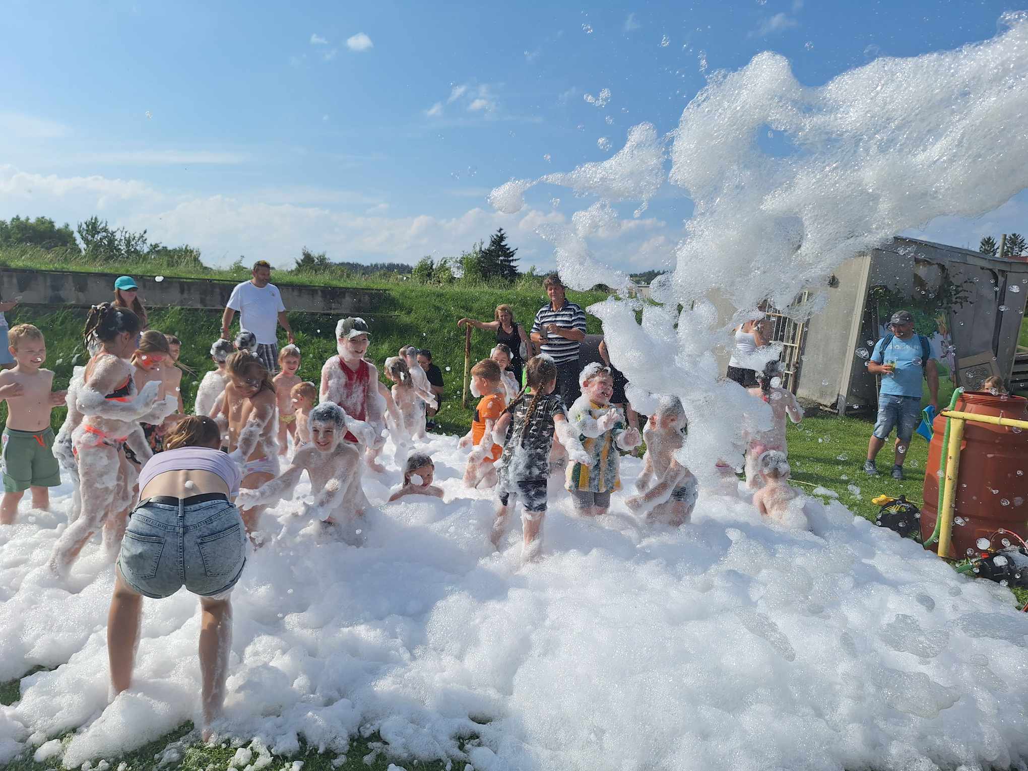 Počasí nám opravdu přálo a tak v závěru odpoledne proběhla koupel v pěně, která pohltila nejen malé, ale i ty velké.