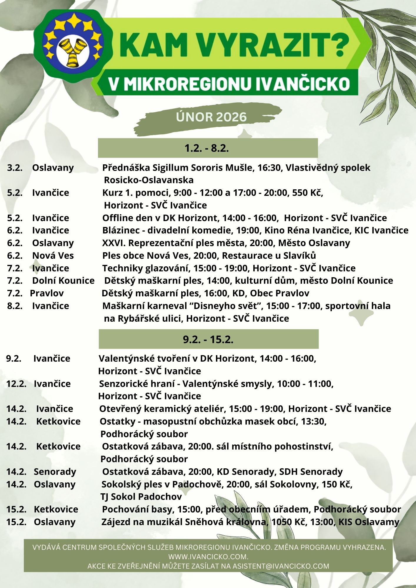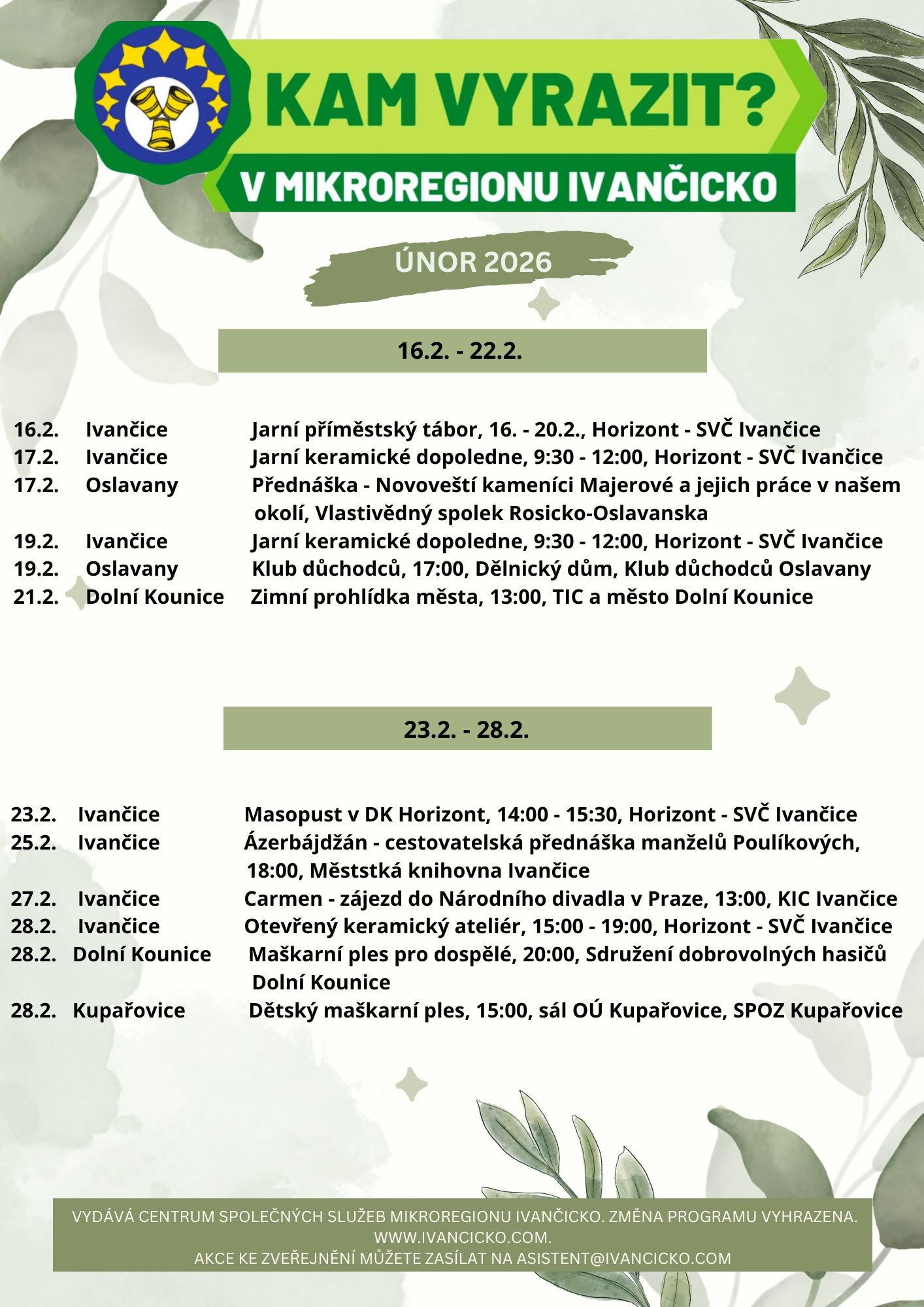 V příloze zveřejňujeme přehled akcí v Mikroregionu Ivančicko v měsíci únoru.