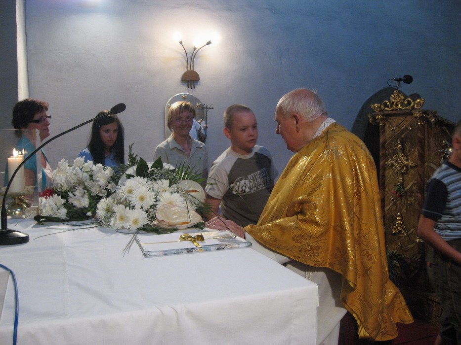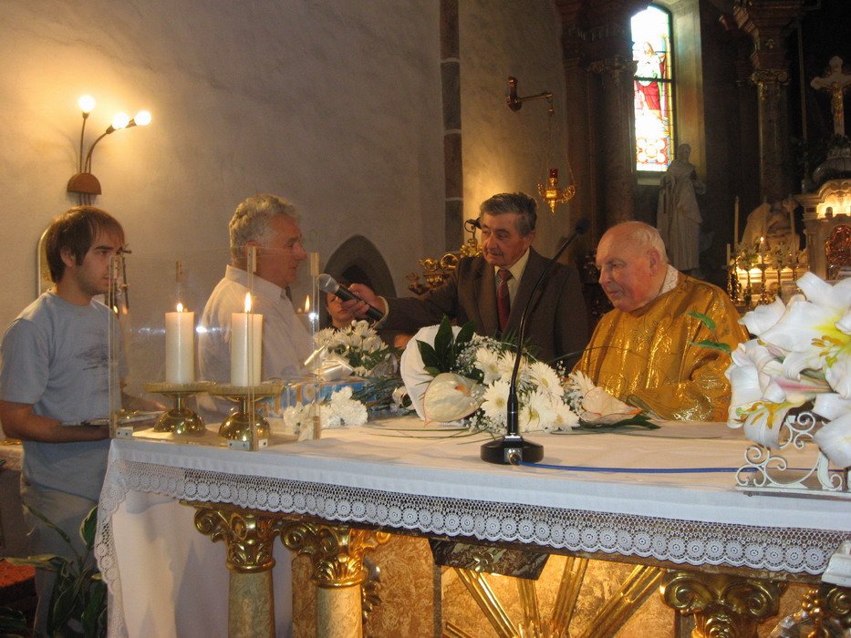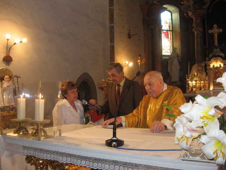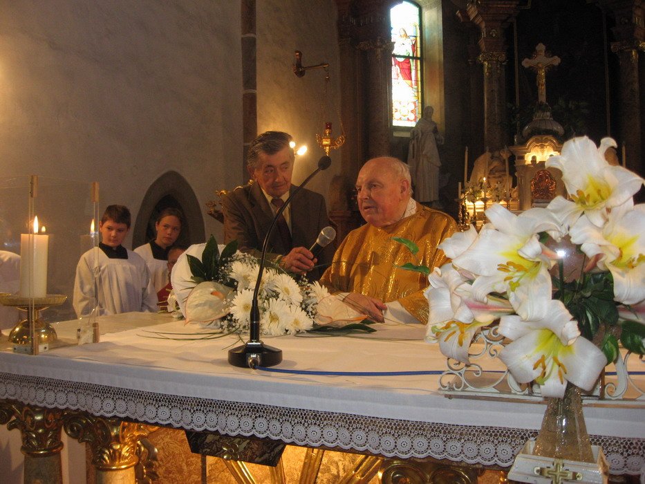 Výročí 40ti let služby otce Jana Kabátka ve farnosti Mohelno. Událo se 5.7.2010.