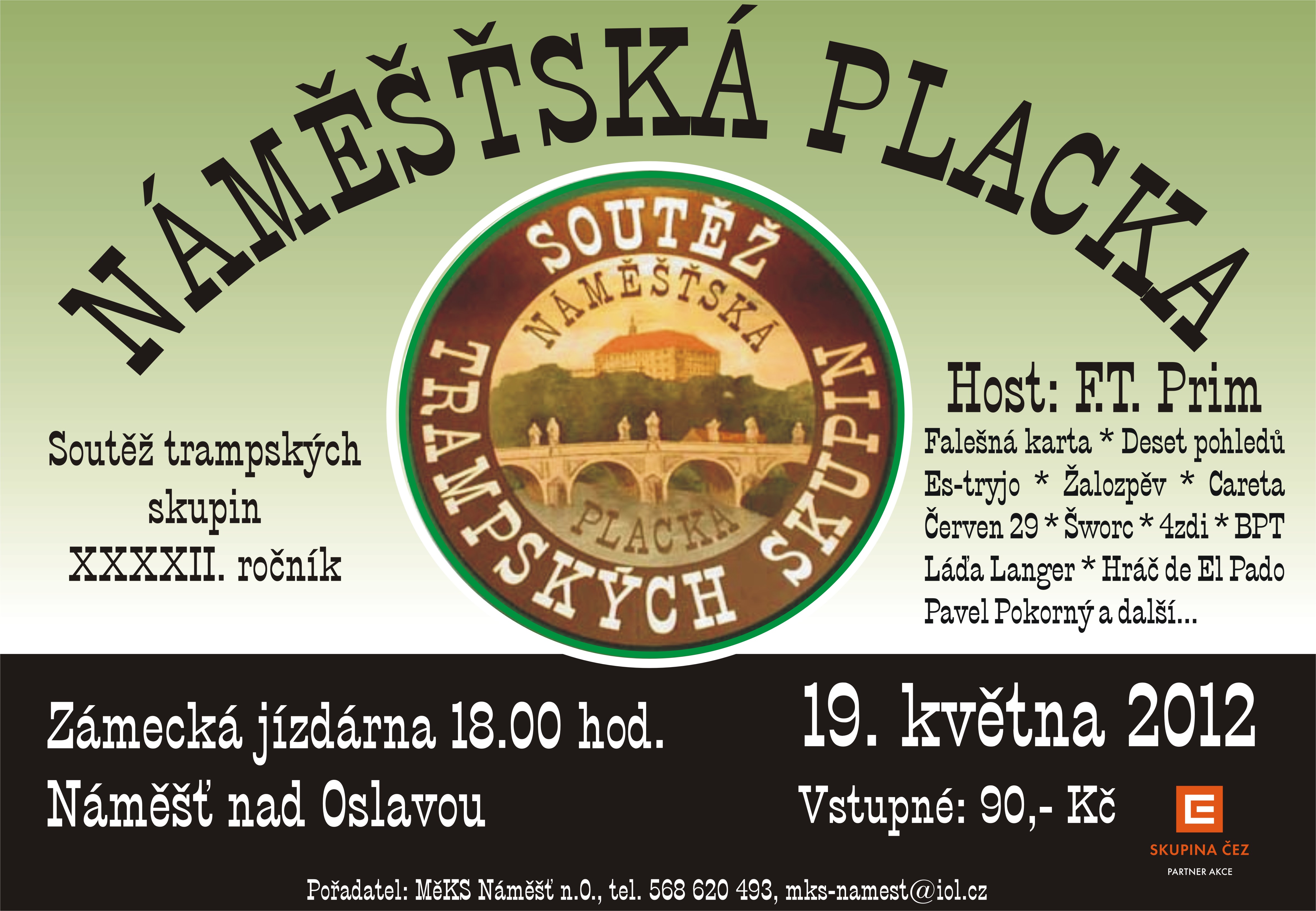 Pozvánka na Náměšťskou placku, která se bude konat v sobotu 19.5. od 18 hod. v zámecké jízdárně.