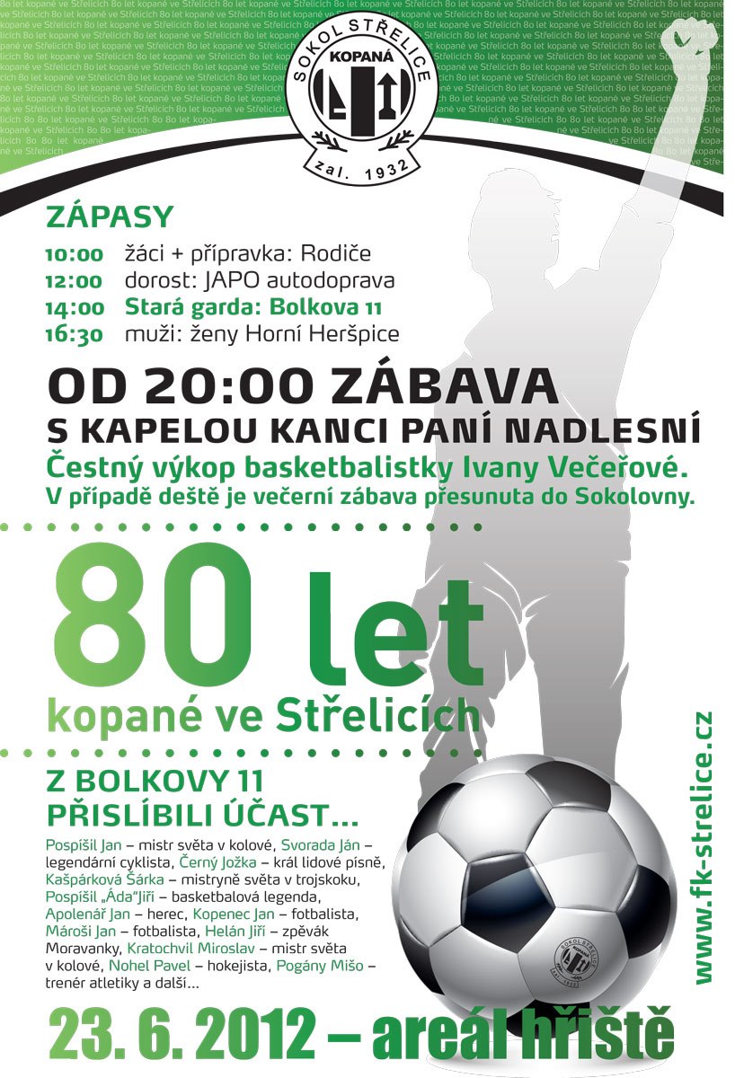 FK Sokol Japo Střelice si Vás dovoluje co nejsrdečněji pozvat na plánované oslavy, konané u příležitosti 80. výročí od založení kopané ve Střelicích.