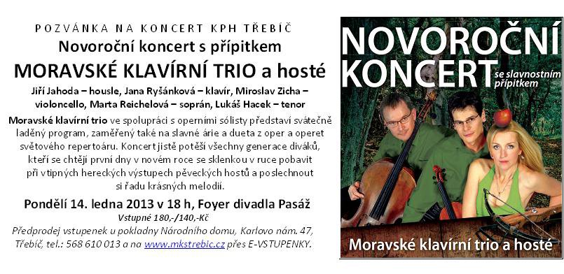 Slavnostní novoroční koncert s přípitkem, který se uskuteční v pondělí 14. ledna 2013 od 18 hod. ve foyer divadla Pasáž v Třebíči.