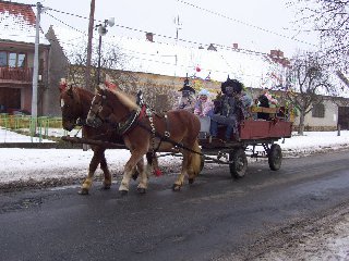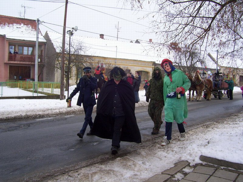 Ostatkovou zábavu vždy předchází dopolední chození masek po obci. Masky nabízejí přípitek a zvou na večerní zábavu.