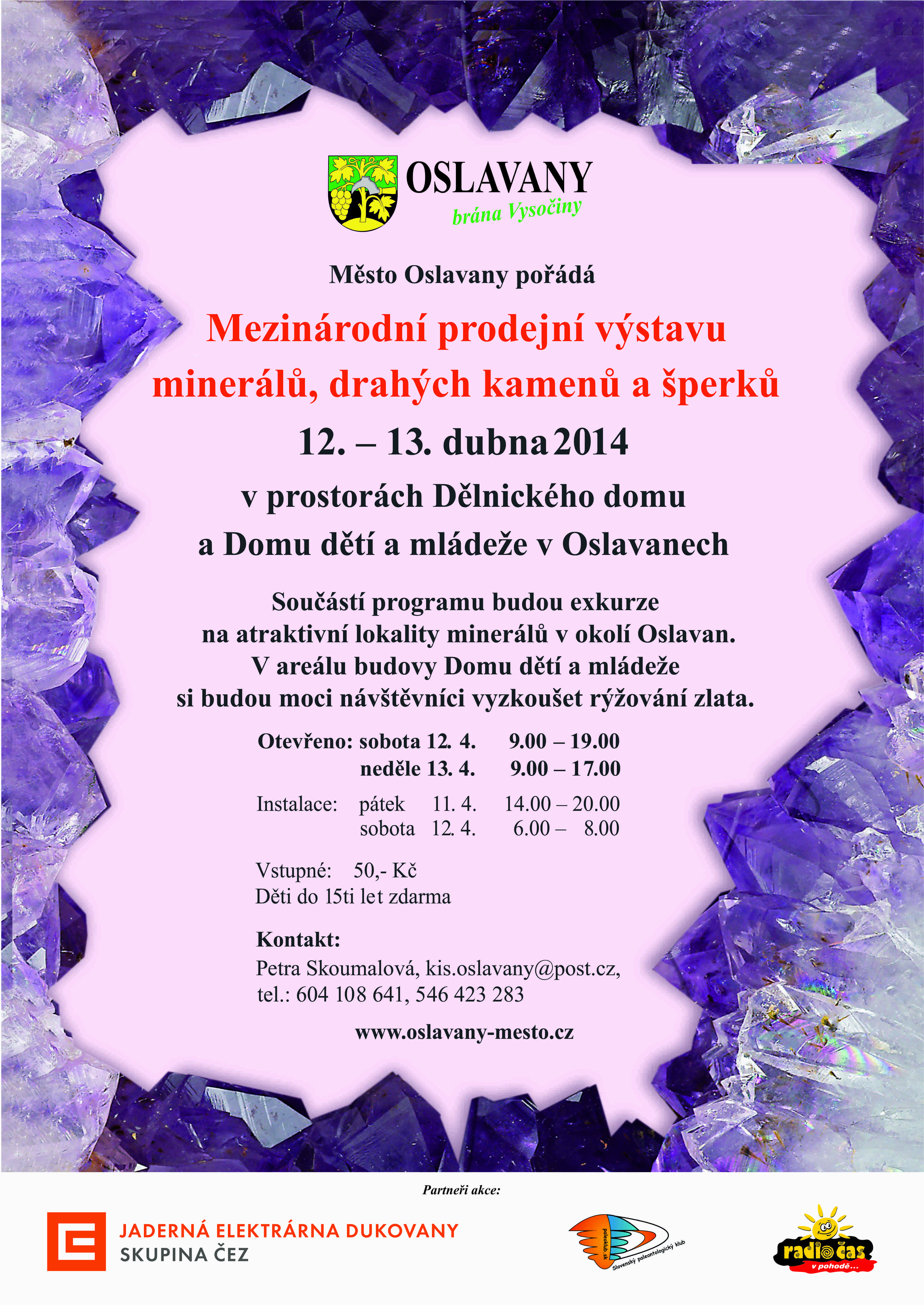 Pozvánka na Výstavu minerálů v Oslavanech, která se bude konat ve dnech 12.-13. dubna 2014.