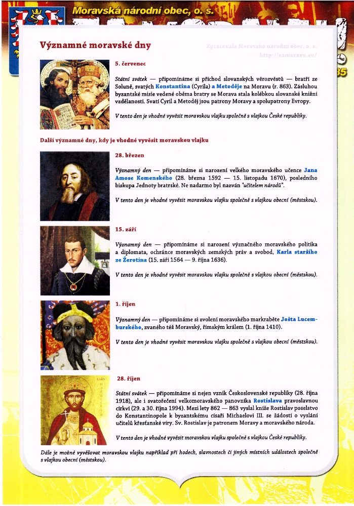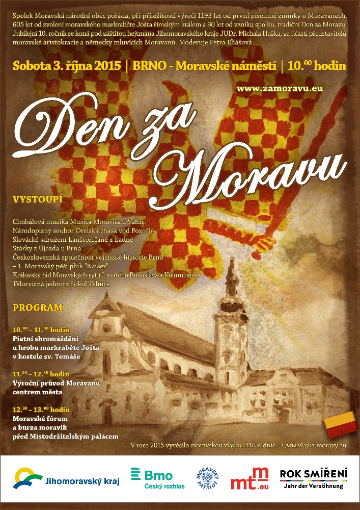 Tradiční moravské slavnosti Den za Moravu proběhnou v Brně 3.října 2015.