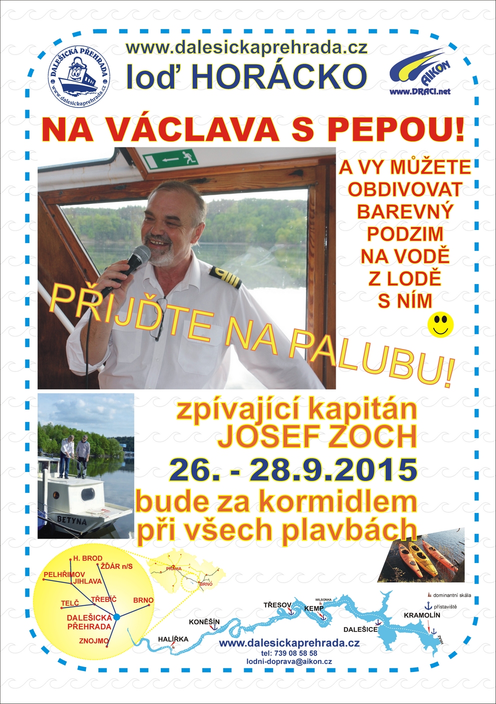 Vážení příznivci lodní dopravy na Dalešické přehradě. Již tento víkend 12.-13.9.2015 Plavba s "burčákem".
