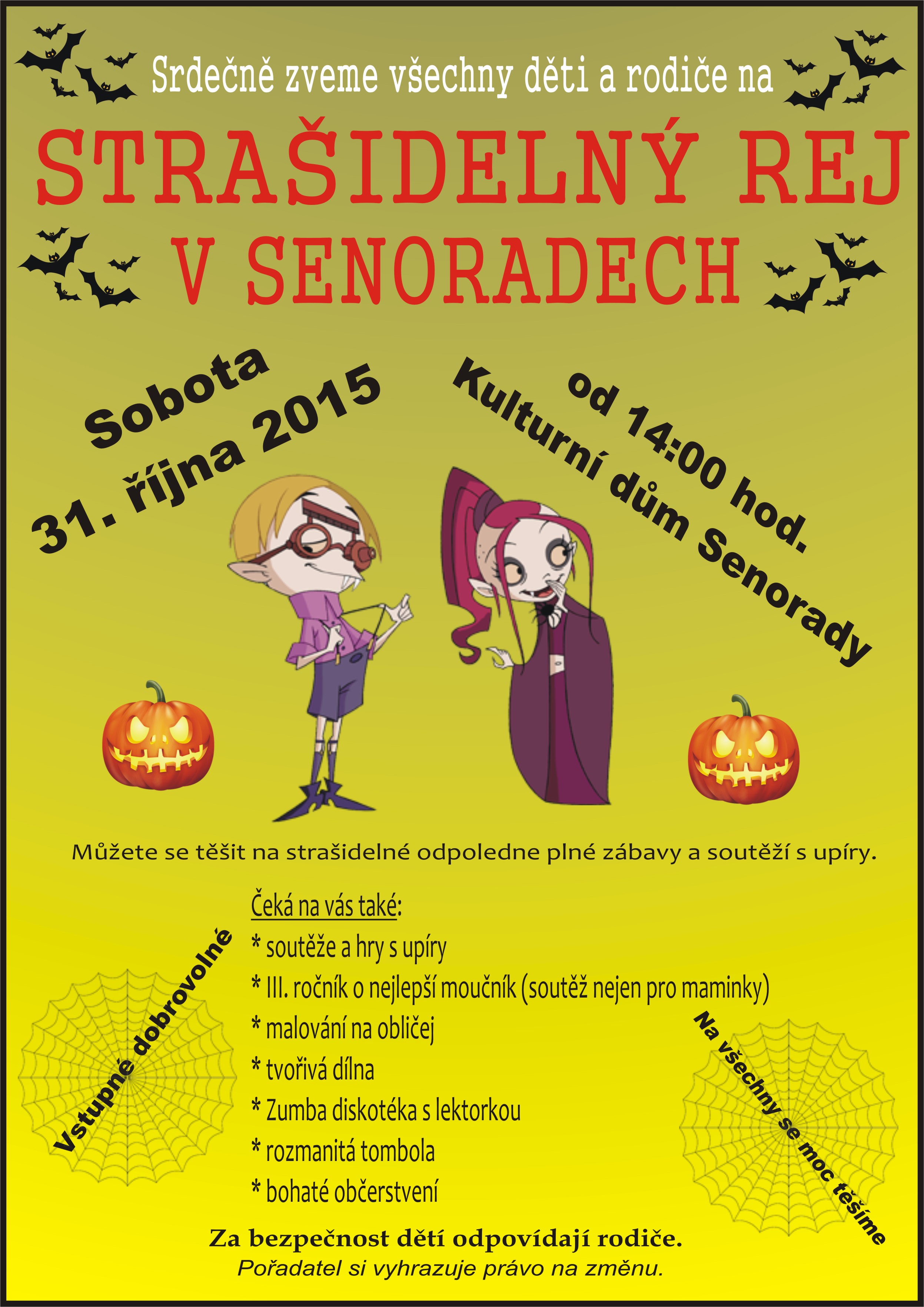 Srdečně zveme všechny děti a rodiče na Strašidelný rej v Senoradech.