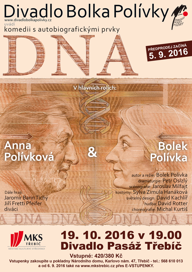 Program Městského kulturního střediska na měsíc září a dále plakát na mimoabonentní představení DNA s Bolkem a Aničkou Polívkovými.