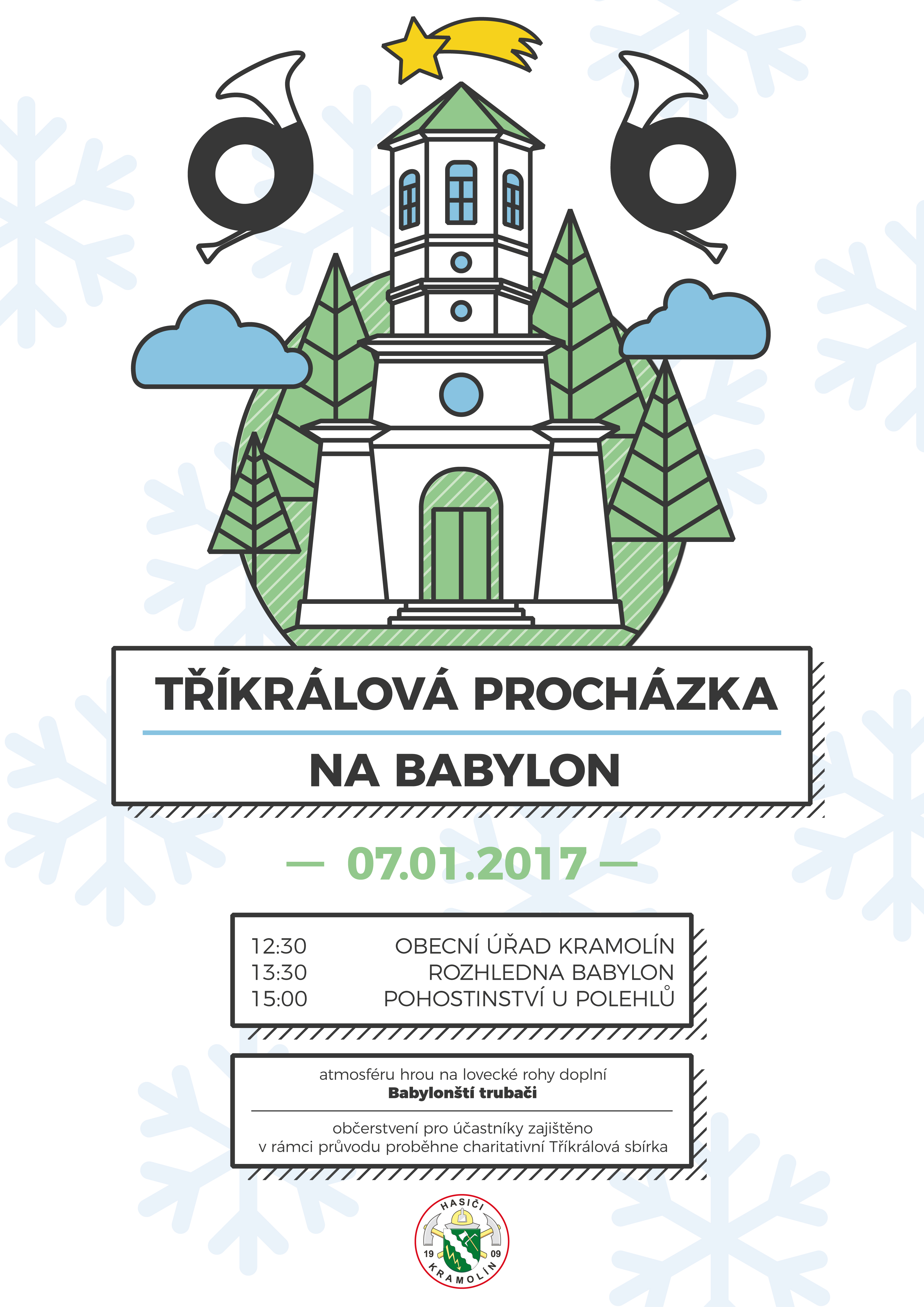 Pozvánka na 5.ročník Tříkrálové procházky na Babylon, která se uskuteční v sobotu 7.1.2017 v Kramolíně.