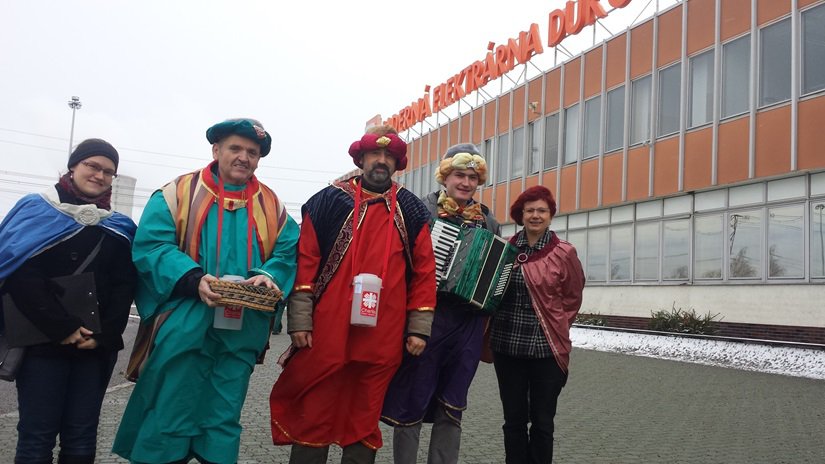 V čase oběda se zaměstnanci elektrárny potkali s koledníky v hale před jídelnou. Za zvuku harmoniky a zpěvu koled se tak mohli připojit k celostátní sbírce na pomoc potřebným. „Dobrý rok vám vinšujem a vše dobré přejem,“ srdečně a s úsměvem prozpěvovali koledníci. Po dvou hodinách koledování byly dvě pokladničky nadité penězi. „Zaměstnanci přispívali drobnými mincemi, městnali do malého otvoru pokladničky stokoruny a vyskytla se i jedna tisícovka. Mockrát děkujeme, jsou zde milí lidé,“ říká Michal Saidl, jeden ze tří králů, který doprovází na harmoniku. Pracuje v Charitě jako sociální pracovník ve stacionáři Úsměv.