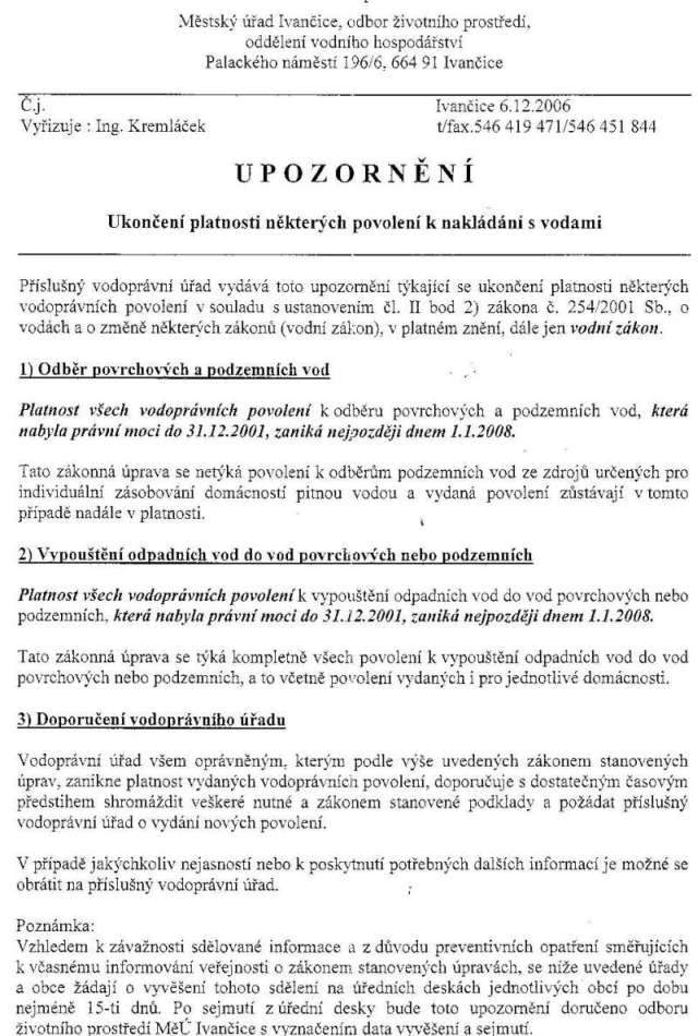 Ukončení platnosti některých povolení k nakládání s vodami.