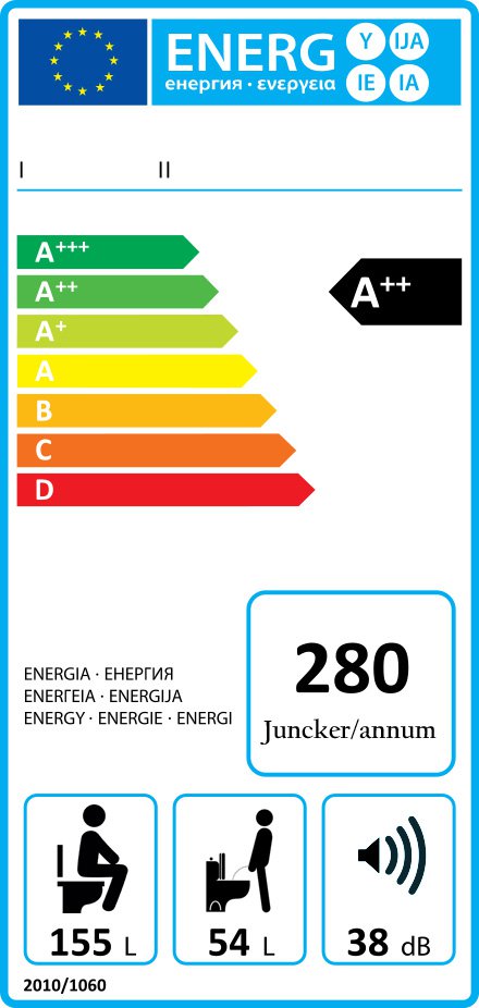 Energetický štítek označuje energetickou náročnost toalety. Jedná se o spotřebu pitné vody, objem vyprodukovaných emisí a frekvenci použití.