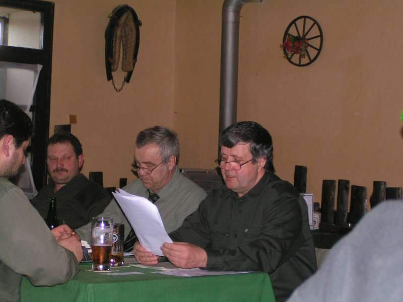Ve své zprávě zhodnotil činnost Mysliveckého sdružení v uplynulém roce.Uvedl,že po zavedení motivačního programu se morálka členů MS zlepšila o 100%,což bylo hlavně patrné na brigádách a účasti členů na dalších akcích pořádané svazem.Poděkoval všem členům za celoroční práci a obětavost se kterou se svých úkolů zhostili.