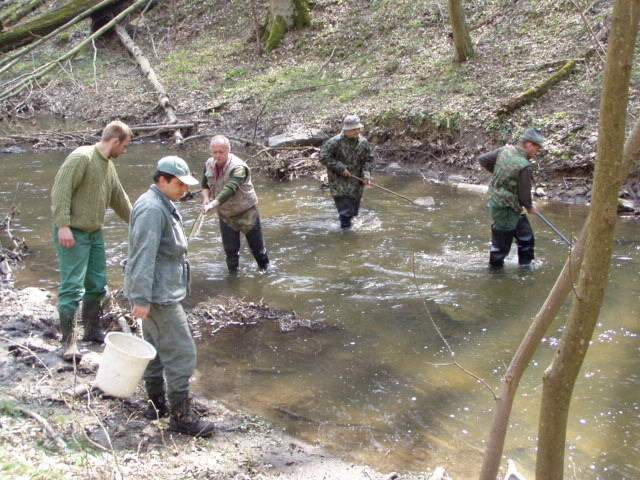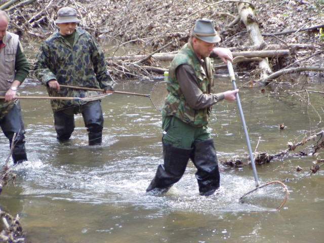 Ve dnech 31.3. a 1.4. 2007 jsme uskutečnili brigádu na výlov pstruha obecného na chovném potoce Chvojnice. Lovili jsme horní část toku což je 4-8km. V sobotu 31.3. jsme slovili 971 ks. Po1-2 letého. Lovili jsme 4-6 km. V tomto úseku potoka byla ryba převážně menší od 10-14cm. Druhý den 1.4. jsme slovili 364ks. Po2-3letého. Slovilo se sice méně, ale ryba byla velká a více jak polovina měla lovnou délku(25cm). Toto ryby si odvezli naši přátelé z Náměště a vysadili do revíru Oslava 3.