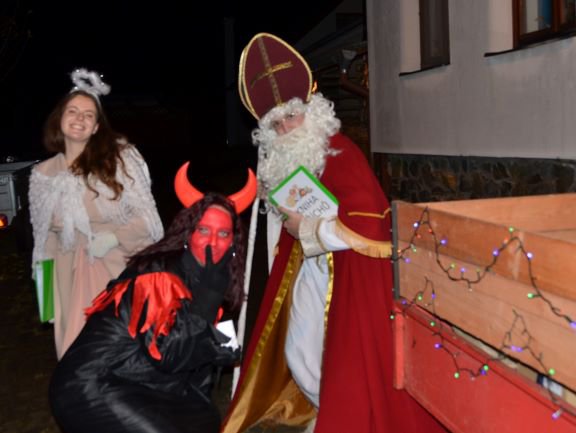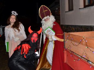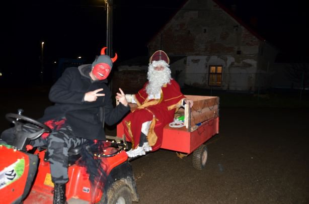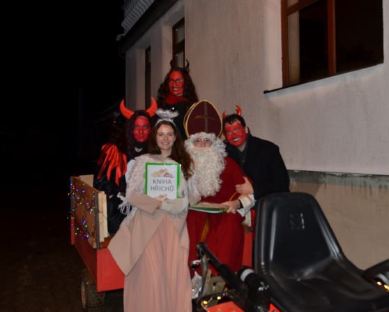 V sobotu 5.12.2020 se po naší obci pohybovala Mikulášská družina se svým povozem. Čerti jako obvykle trošku strašili, neboť v knize hříchů bylo vše zaznamenáno. Šikovné děti však mohly básničkou a slibem, že se polepší, odčinit své prohřešky a anděl s Mikulášem jim nadělil pěknou nadílku.