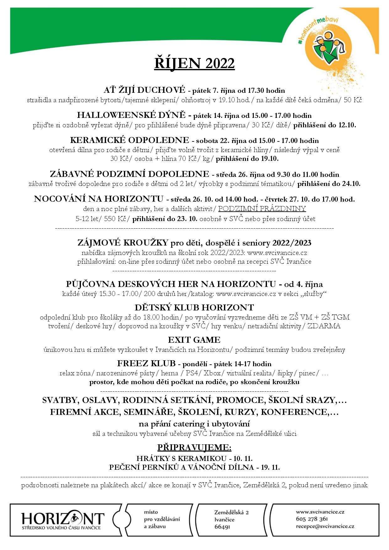 V příloze jsou zveřejněny letáky s pozvánkami na akce Střediska volného času v Ivančicích