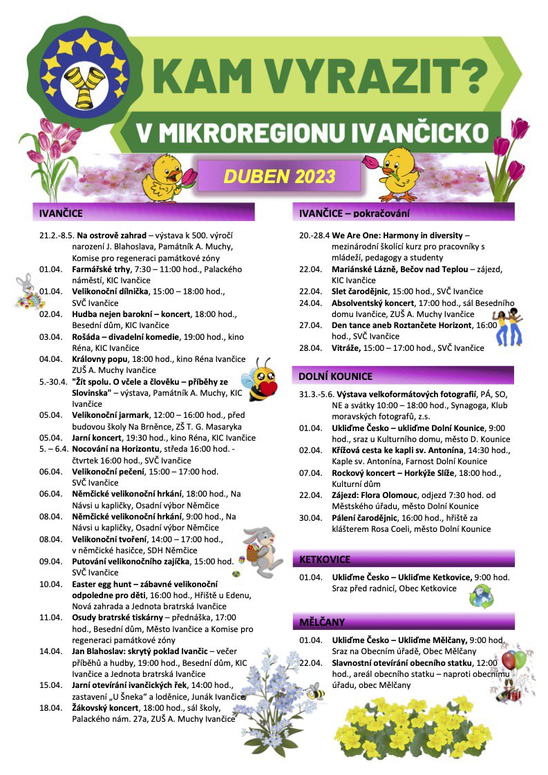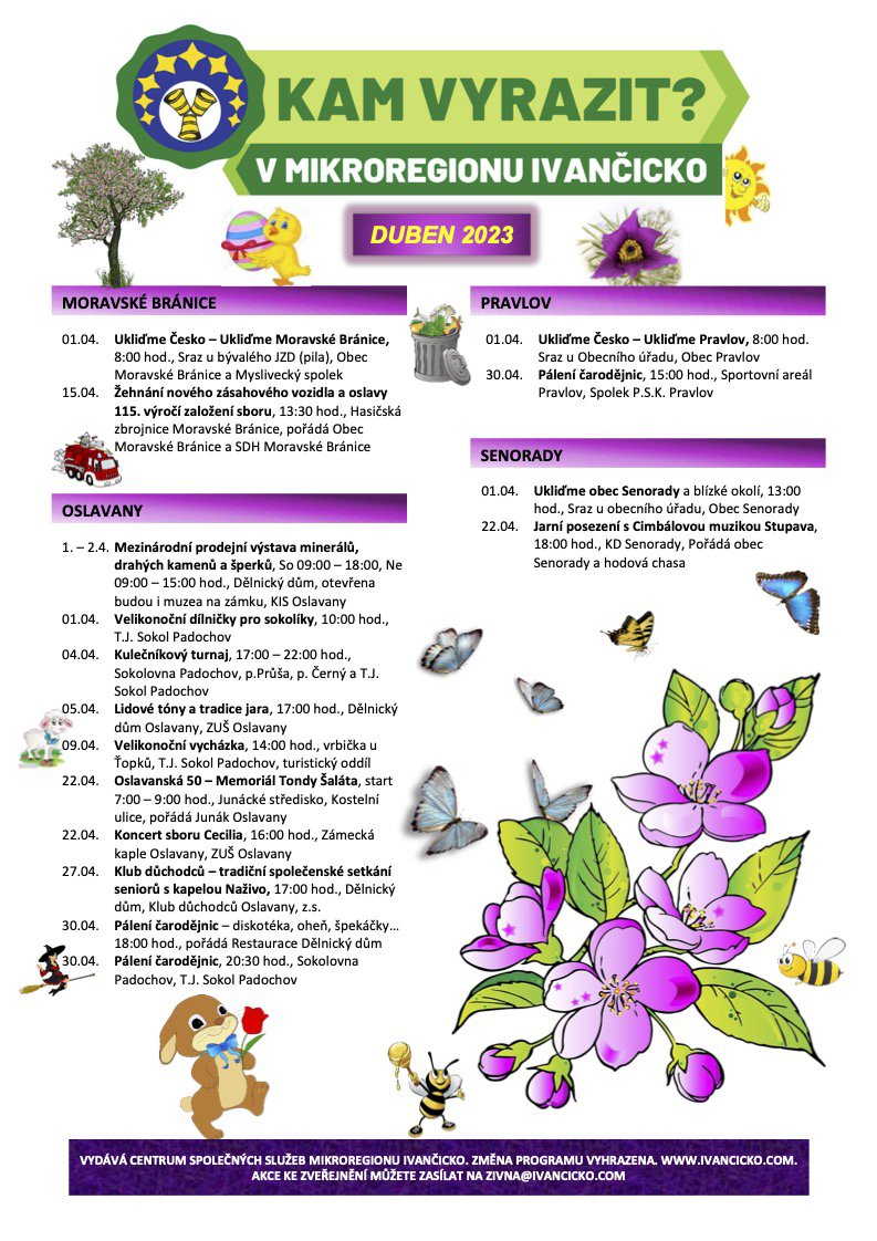V příloze jsou zveřejněny letáčky s akcemi, které se budou konat v obcích Mikroregionu Ivančicko v měsíci dubnu.