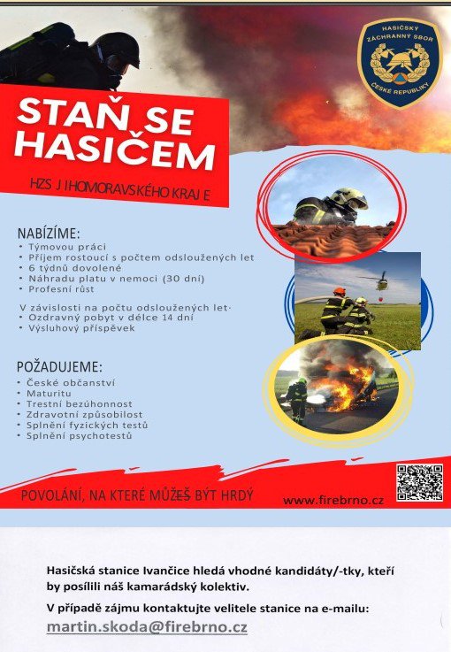 V příloze je zveřejněna informace o náboru k Hasičskému záchrannému sboru Jihomoravského kraje.