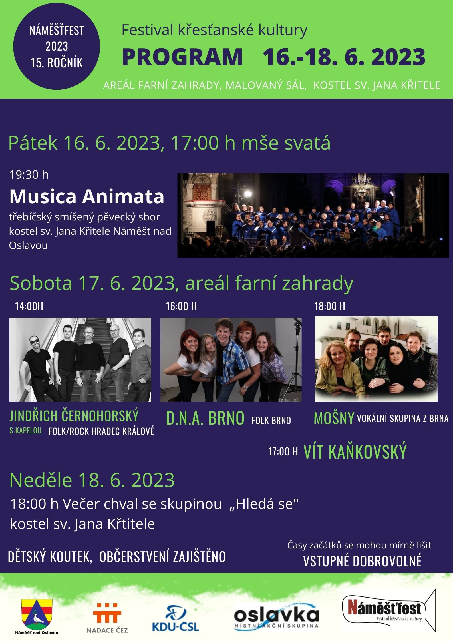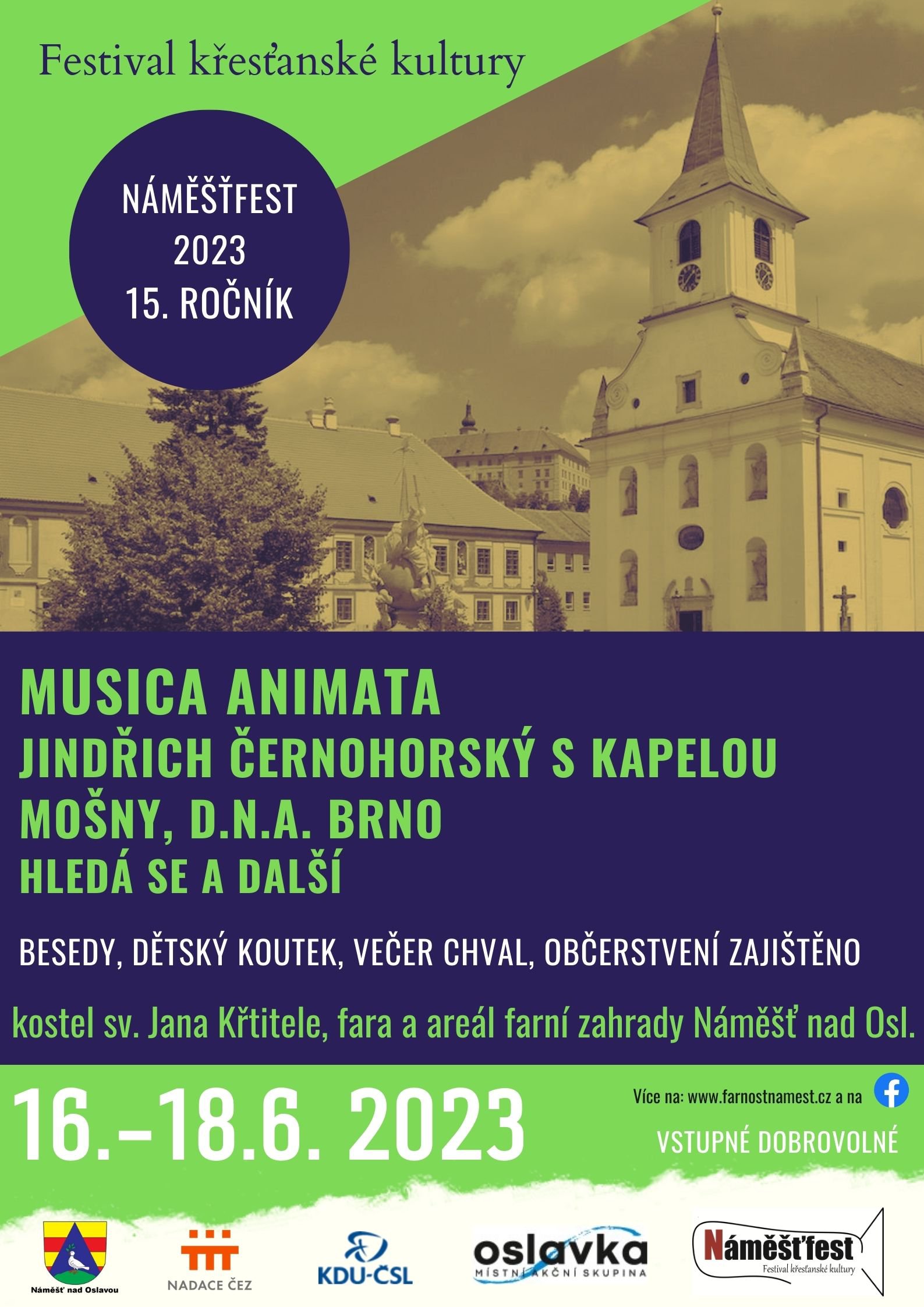 V Náměšti nad Oslavou se o víkendu 16.-18.6. uskuteční 15. ročník křesťanského festivalu Náměšťfest.