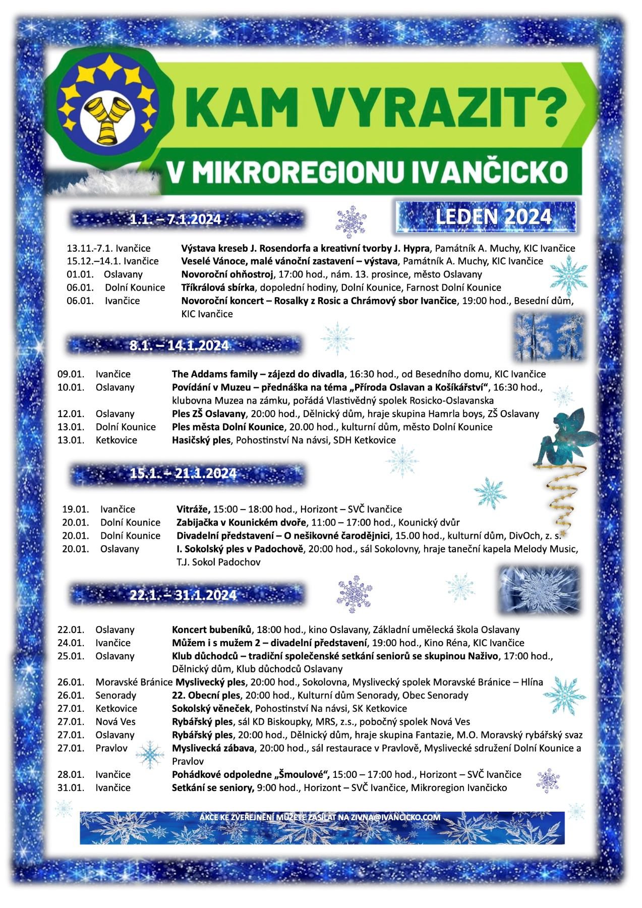 V příloze zveřejňujeme kalendář akcí, které se budou konat v Mikroregionu Ivančicko v měsíci lednu.