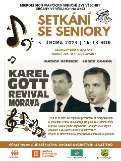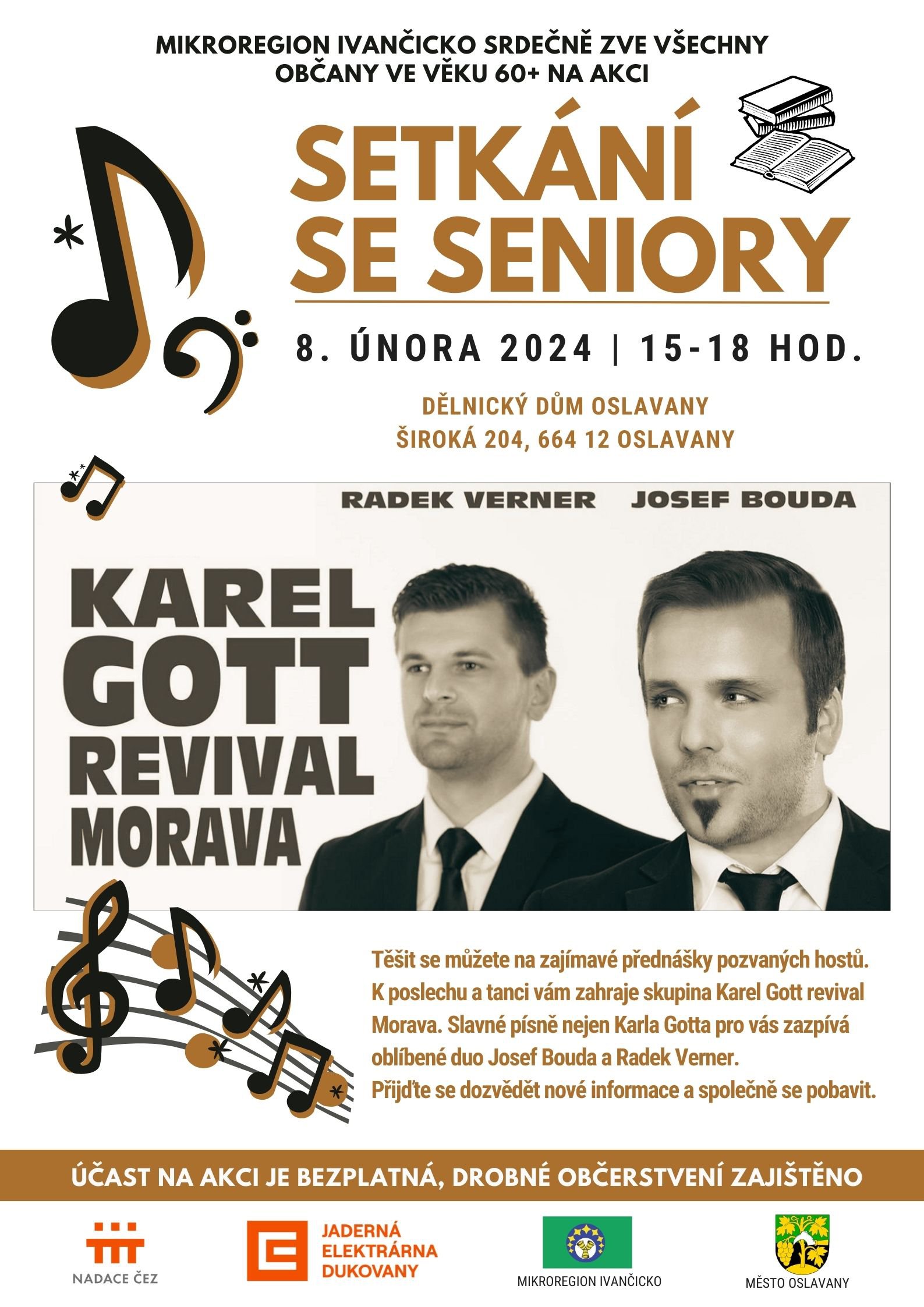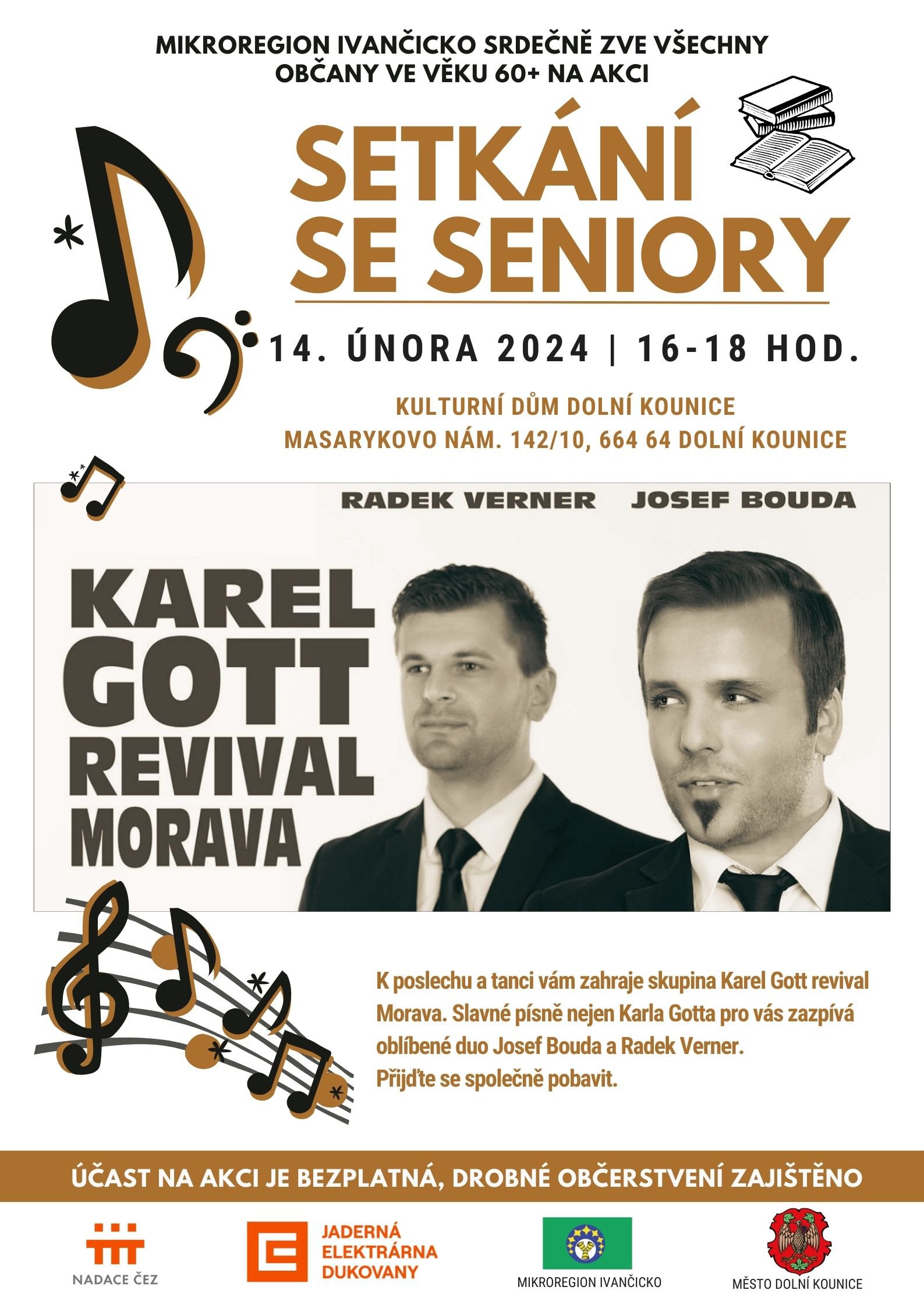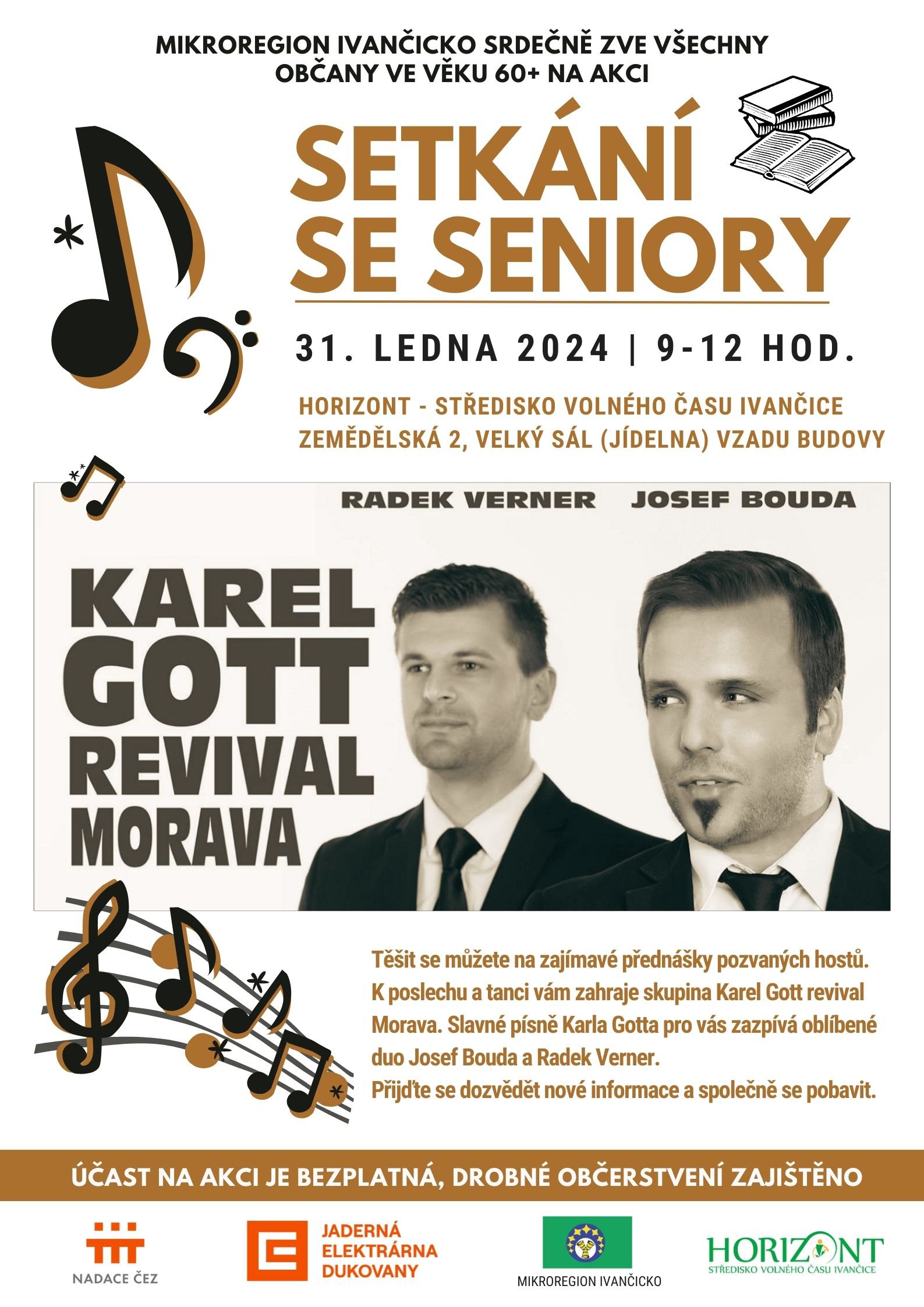Centrum společných služeb Mikroregionu Ivančicko srdečně zve na Setkání se seniory, které se uskuteční v níže uvedených termínech v Dolních Kounicích, Ivančicích a Oslavanech.