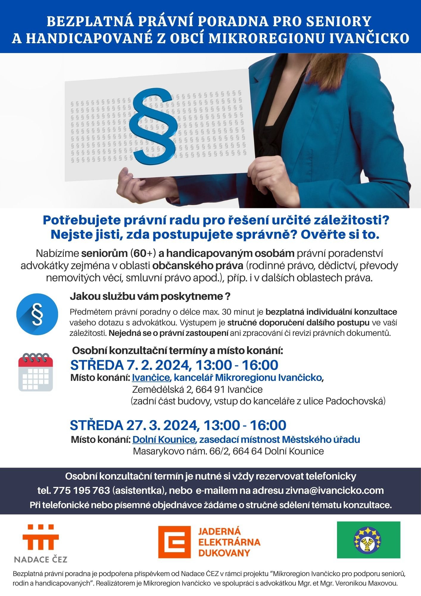 Nabízí také možnost využití bezplatné právní poradny pro seniory a handicapované.