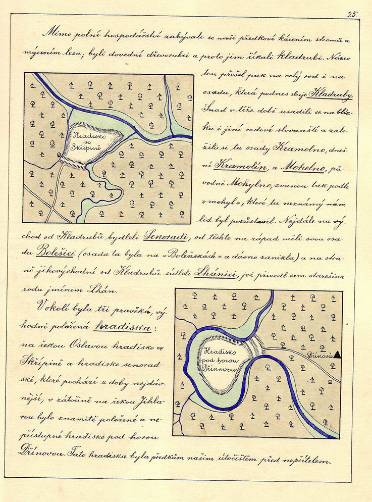 V ručně psané historii obce Kladeruby nad Oslavou se můžeme dočíst o okolí obce Senorady v období 9.-10. století. Historii obce Kladeruby sepsal v roce 1925 Karel Křivý.