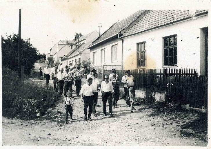Archivní fotografie, které zachycují různé zábavy (poutě, hody,..) v obci Senorady: