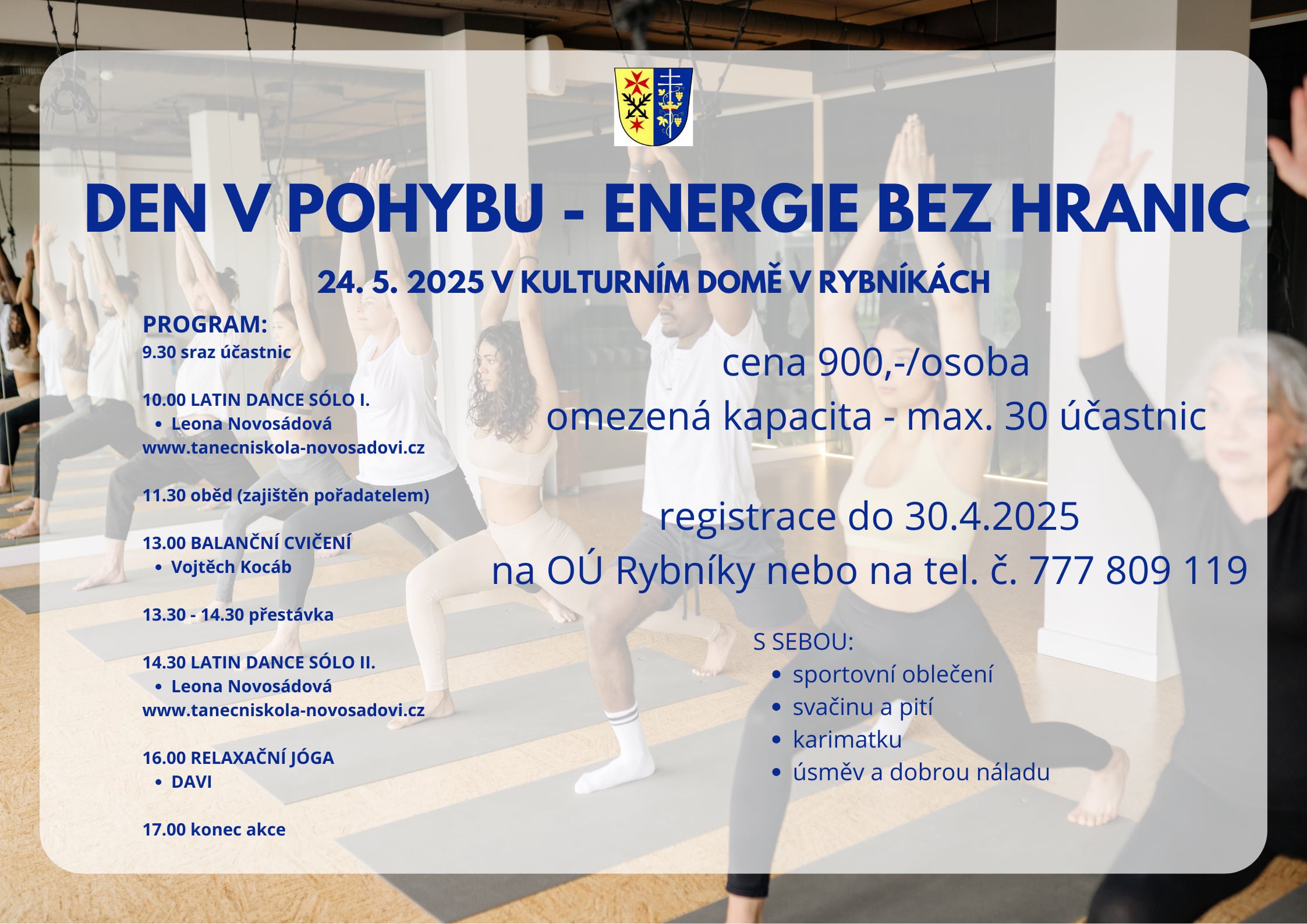 V příloze zveřejňujeme pozvánku na akci "Den v pohybu", kterou pořádá Taneční škola Novosádovi.
