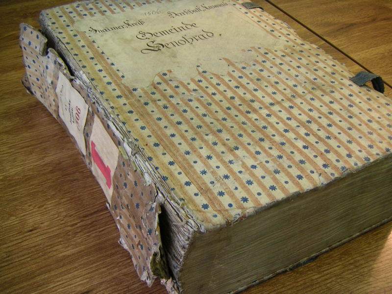 Exponáty z oddělení Knihy MZA nám dovolují nahlédnout do knih, které jsou součástí Moravského zemského archívu v Brně. Pokud jste si četli informace z expozice našeho muzea věnující se genealogii a chcete začít pátrat po svých předcích nebo hodláte hledat nové informace ze senoradská historie, pak se nejprve podívejte, jak vypadají archiválie, ve kterých byste svůj výzkum prováděli. K pátrání ve většině z těchto pramenů je potřebná znalost němčiny a také čtení textů (písmen) není úplně jednoduché. V lepším případě můžete narazit na Švabach (typ tištěného písma) a v horším případě na Kurent (typ psaného písma), jedná se o typy starého německého písma. Obvykle jsou švabachem psány tištěné prvky stránek (jako záhlaví, popisy řádků a sloupců) a kurentem ručně prováděné zápisy.