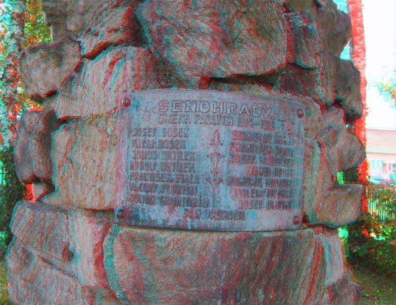 Exponáty, které si můžete prohlédnout pomocí 3D brýlí (brýle s jedním sklem červeným a druhým azurovým). Brýle jsou k zapůjčení nebo zakoupení dostupné na OÚ Senorady. Malé náhledy zkreslují barvy a tím i "pocit trojrozměrnosti", proto doporučujeme prohlížet snímky v plné kvalitě uvedené v odkazech na konci článku.