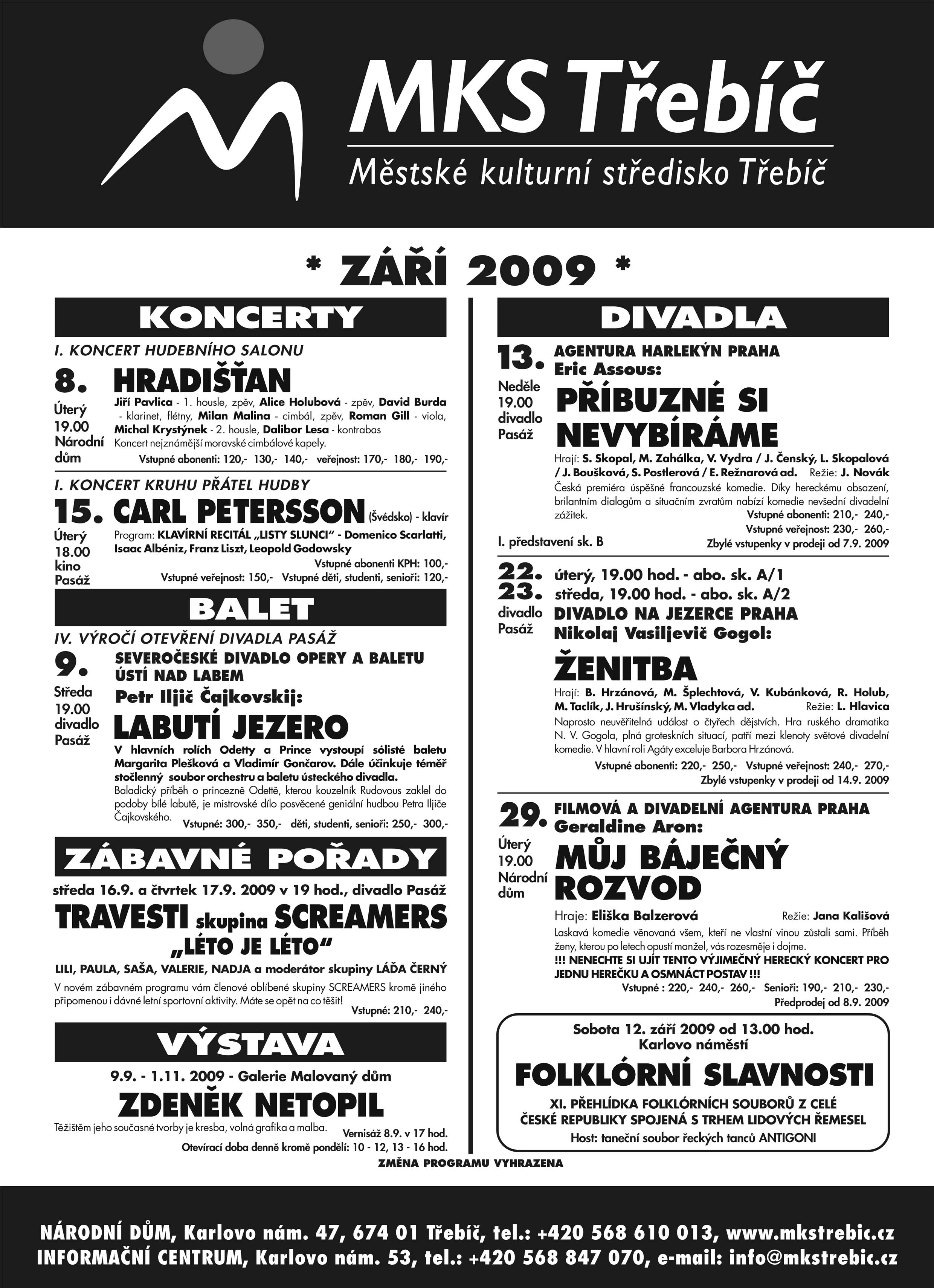 Přehled kulturních akcí, které pořádá Městské kulturní středisko Třebíč v měsíci září.