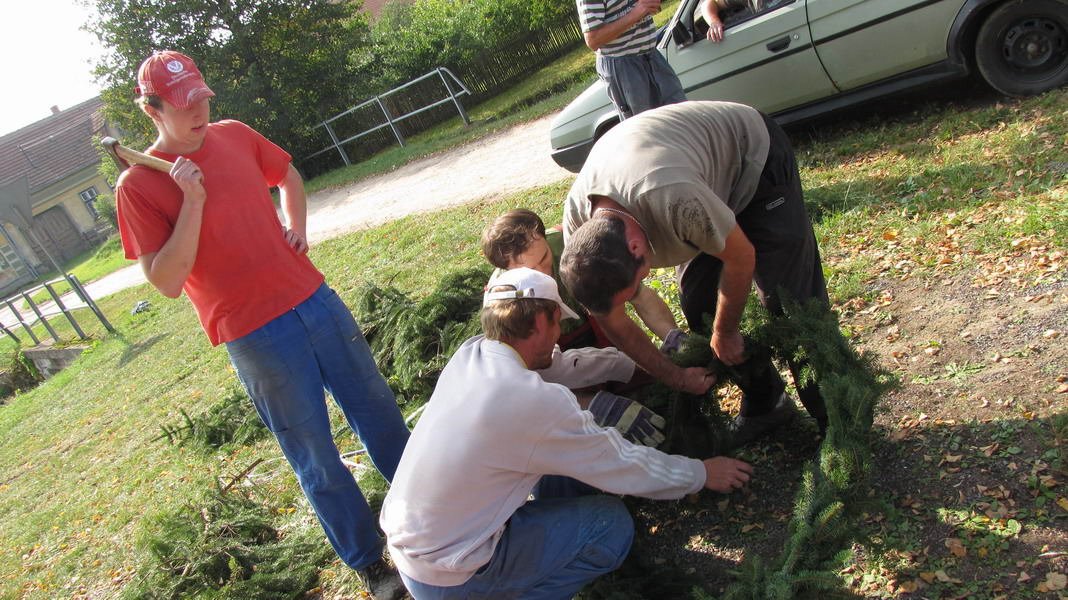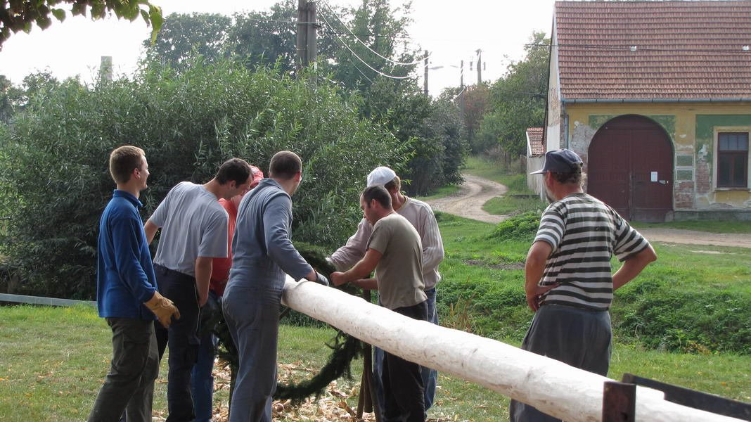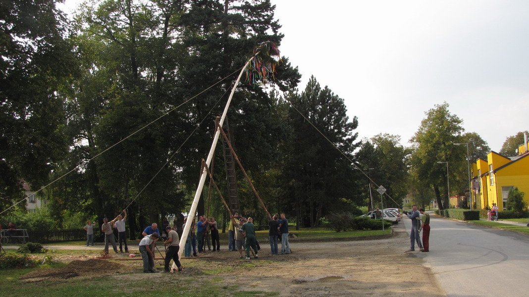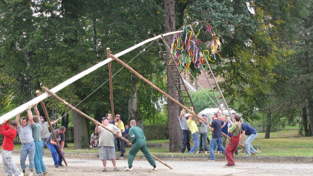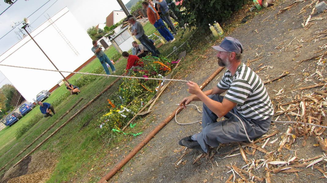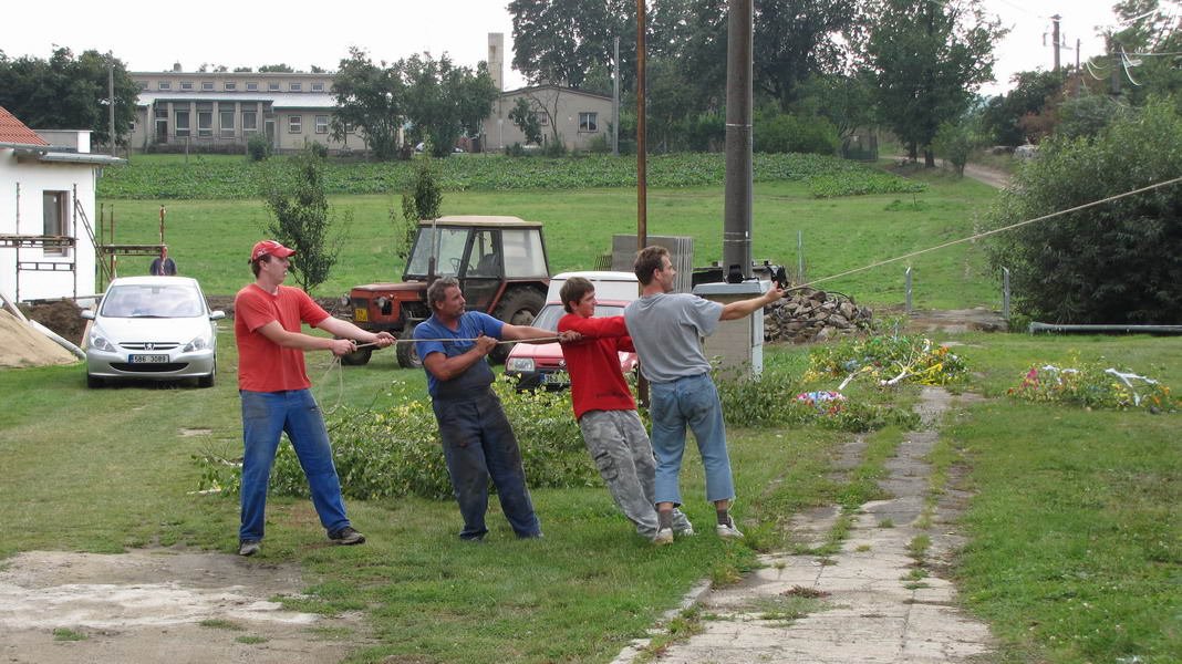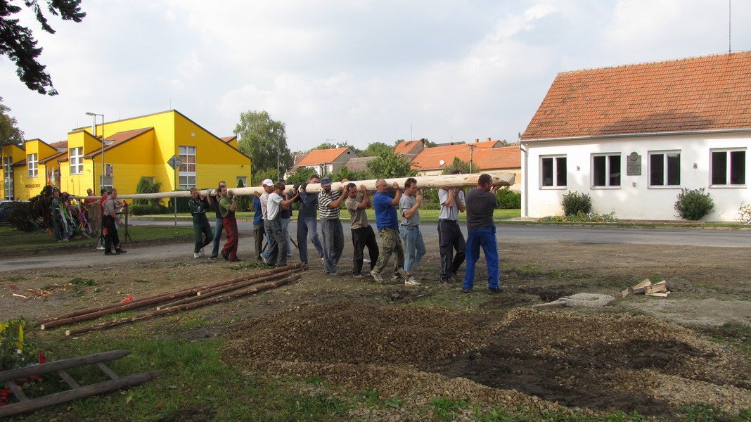 Ke krojovaným hodům patří také mája. V loňském roce jsme si na její stavbu netroufali, ale letos padlo rohodnutí, že by se nad obcí po dlouhých letech měla mája opět hrdě tyčit.