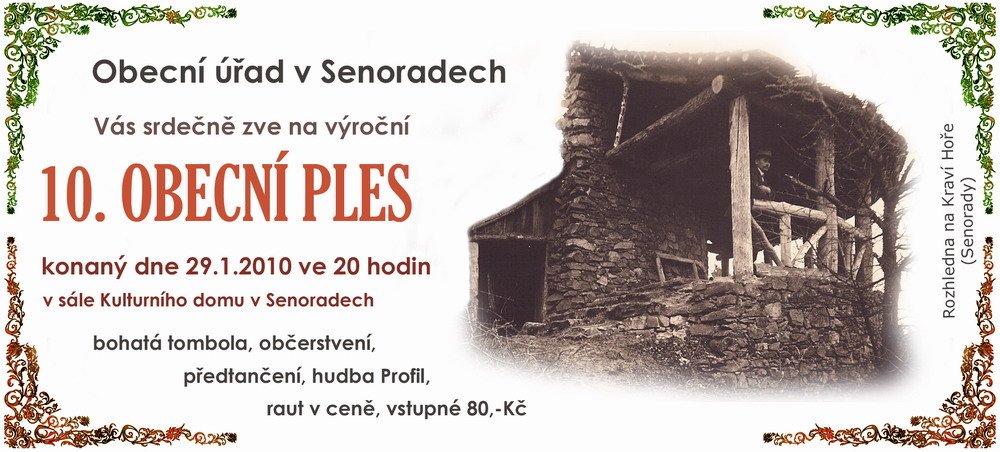 Obecní úřad v Senoradech Vás tímto srdečně zve na výroční 10. obecní ples.