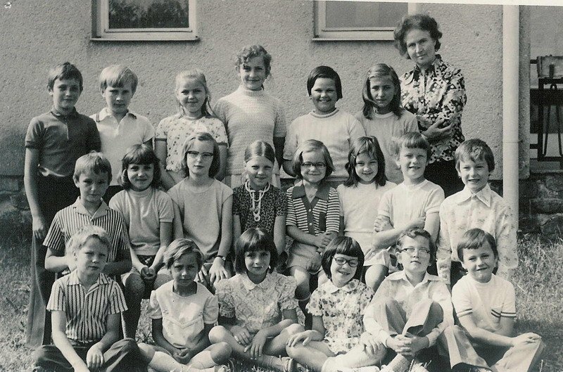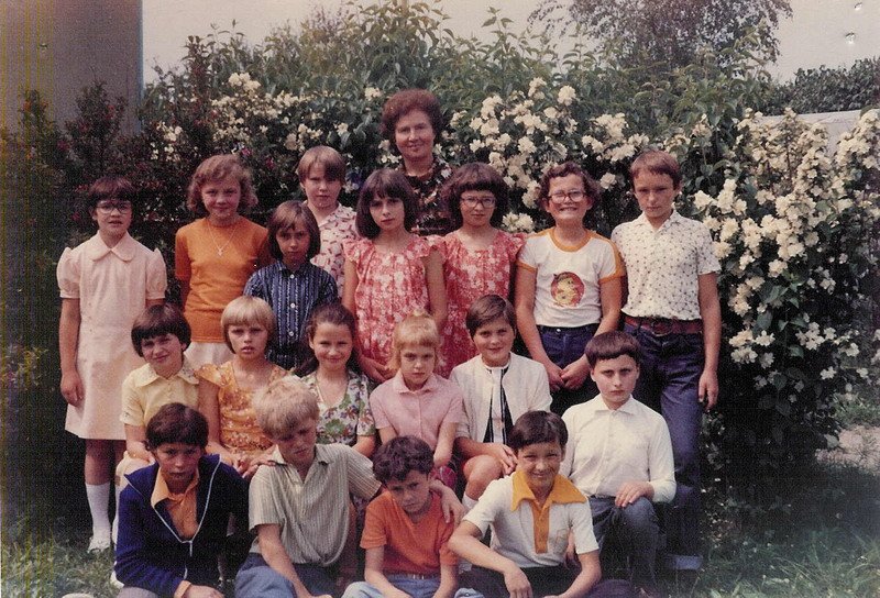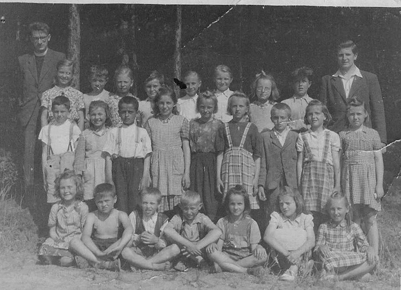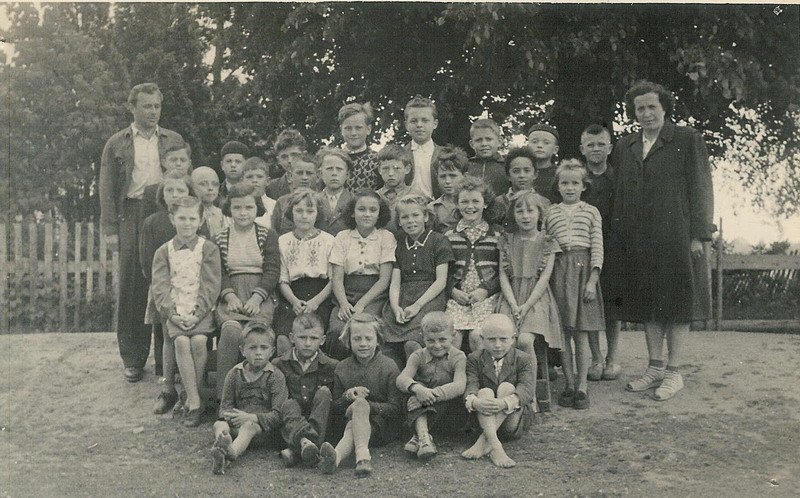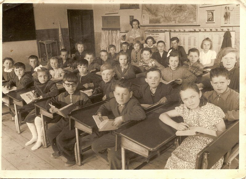 Snímky zachycují fotky tříd z obecné školy v Senoradech.