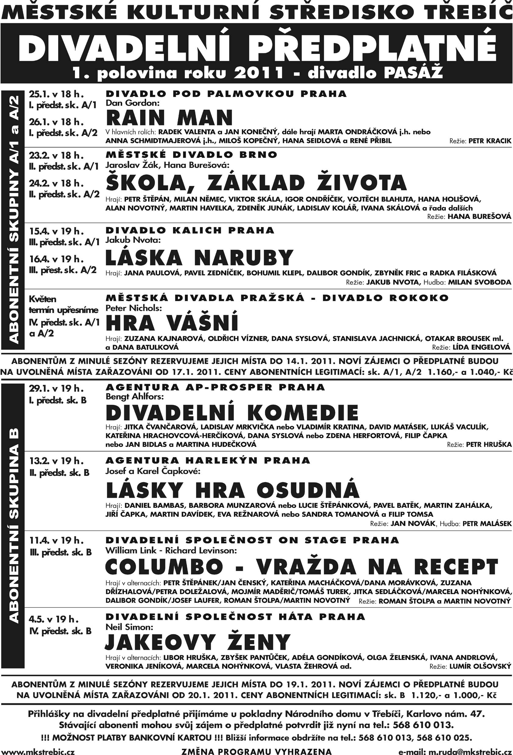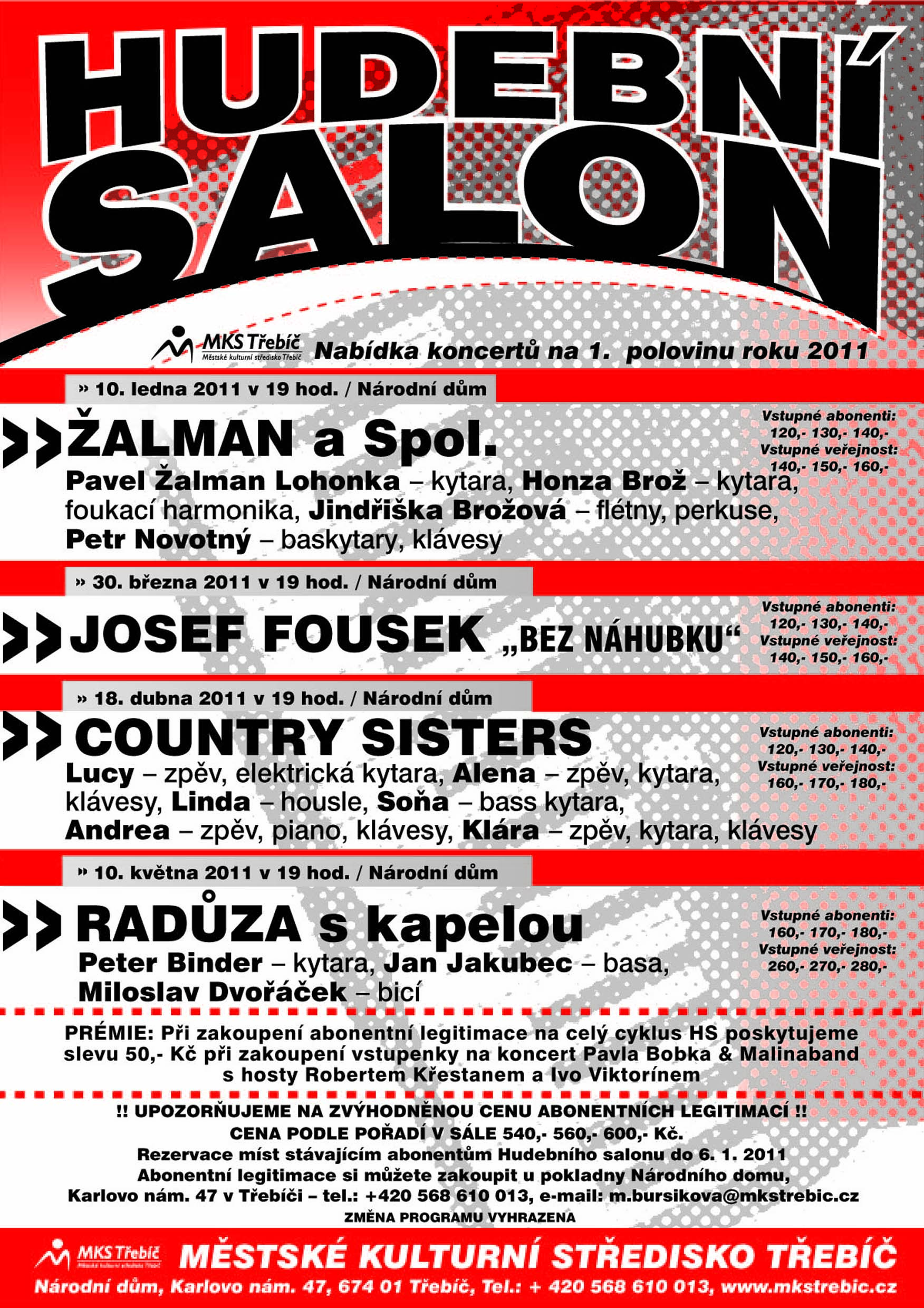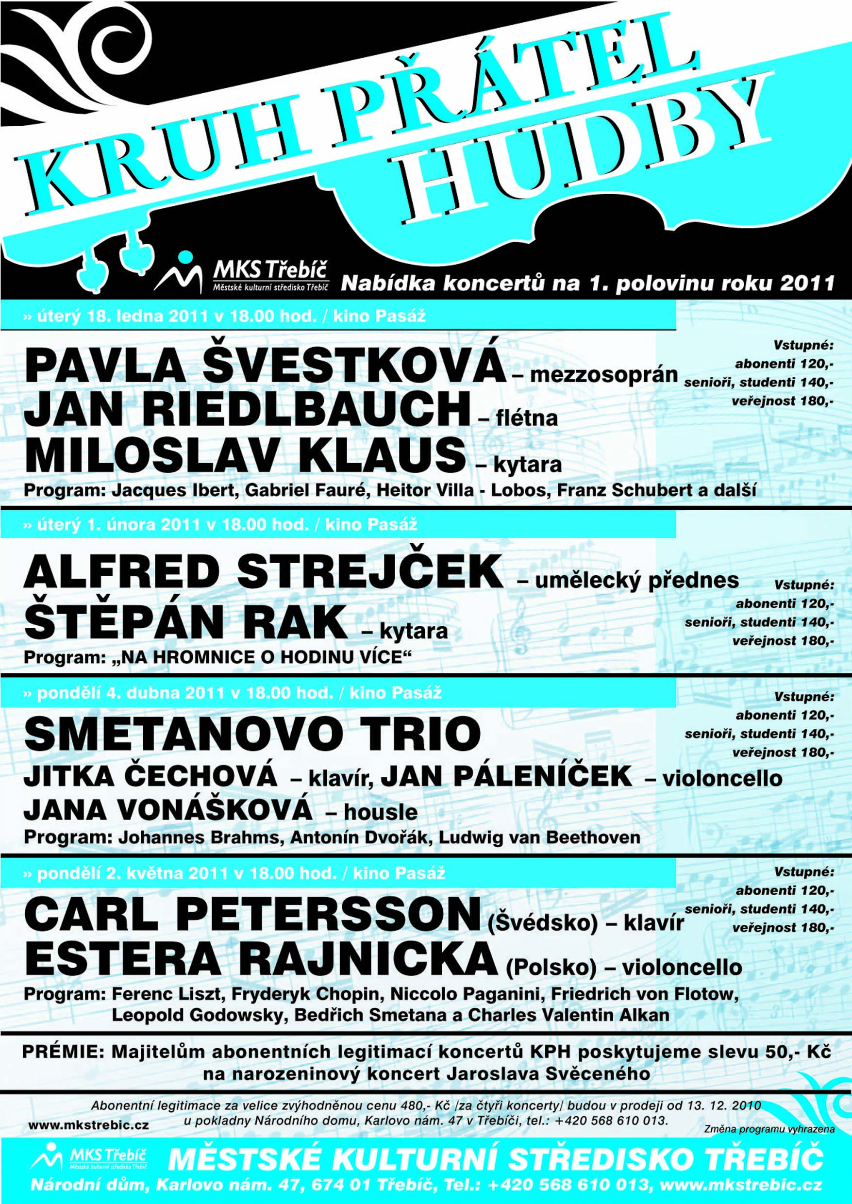 Přehled kulturních akcí na leden 2011, které pořádá Městské kulturní středisko v Třebíči.