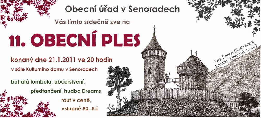 Obecní úřad Senorady Vás srdečně zve na 11. obecní ples konaný dne 21. ledna 2011 ve 20 hod v sále Kulturního domu Senorady.