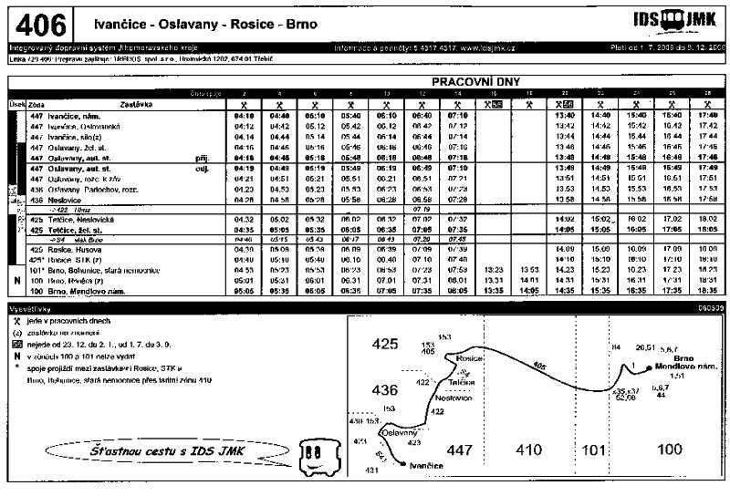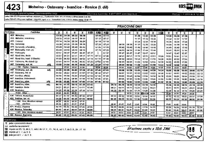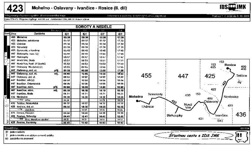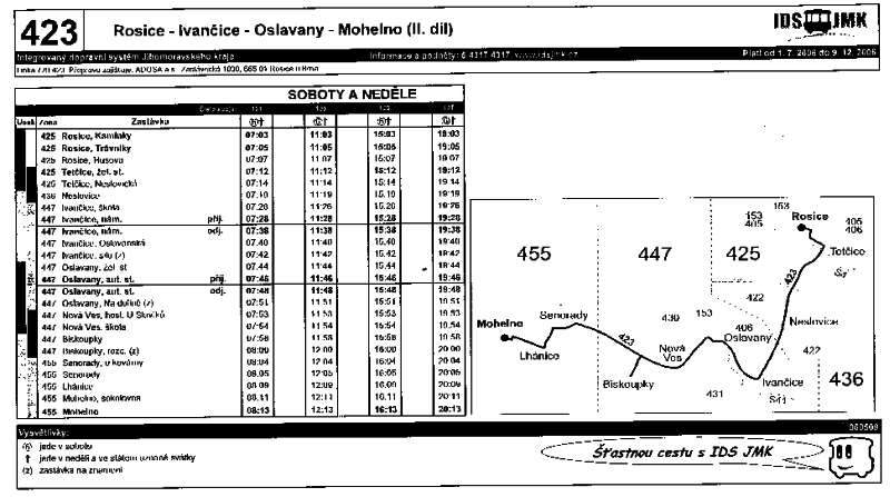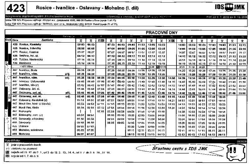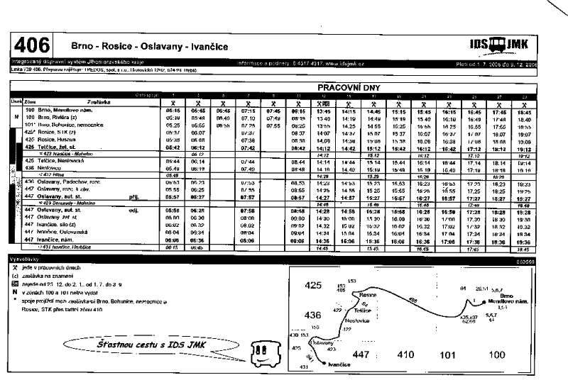 Od 1.července 2006 bude v naší obci zaveden provoz IDS JMK.Kvůli lepší infomovanosti občanů byly do domácností doručeny informační letáky.Rovněž byly vydány pamětní jízdenky,které mohou cestující v prvních 6-ti dnech provozu využít k bezplatnému cestování všemi nově zaintegrovanými linkami.Každá jízdenka platí pro libovolný počet jízd v jednom libovolně zvoleném dnu.