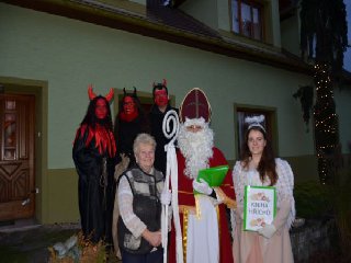 V sobotu 5.12.2020 se po naší obci pohybovala Mikulášská družina se svým povozem. Čerti jako obvykle trošku strašili, neboť v knize hříchů bylo vše zaznamenáno. Šikovné děti však mohly básničkou a slibem, že se polepší, odčinit své prohřešky a anděl s Mikulášem jim nadělil pěknou nadílku....