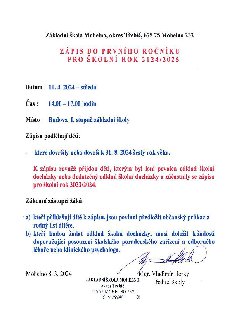 Oznámení ZŠ Mohelno - Zápis do 1.ročníku