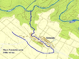 Senoradský potok pramení u obce Senorady, protéká obcí a ústí do řeky Oslavy. Senoradský potok je dlouhý 4.8 km a výškový rozdíl mezi pramenem a ústím činí 80 m. Pramen je ve výšce 356 m.n.m. a ústí je ve výšce 276 m.n.m. Potok je z velké části regulovaný, zejména v místech, kde protéká obcí. Přirozené korito má jen za obcí v roklině k řece Oslavě. Mezi významější přítoky Senoradského pot...