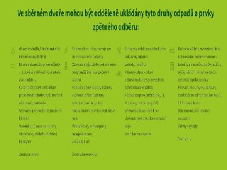 Od 1.1.2021 vešel v platnost nový zákon č. 541/2020 Sb., o odpadech a zákon č. 542/2020 Sb., o výrobcích s ukončenou životností. 12.7.2021 vyšla v platnost vyhláška č. 273/2021 Sb., o podrobnostech nakládání s odpady. Jsme na počátku cesty k cirkulárnímu hospodářství, které usiluje o co možná největší zvyšování recyklace a minimalizaci odpadu, který není dále využit. Cílem by nemělo být produkt –...