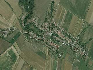 Fotomapa z přelomu milénia. Prohlédněte si letecký snímek na naši obec. Snímek zahrnuje celou obec i s hospodářskými stavbami bývalého zěmědělského družstva. Na fotografii jsou zřetelné všechny stavby v obci. Krásně viditelné je i bývalé tvrziště Šance. Zdroj: portal.gov.cz...
