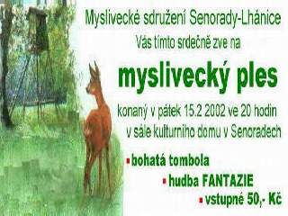 Pozvánky na myslivecké plesy konané v obci Senorady. Myslivci tradičně pořádají také poslední leč. Plesy se konaly buď ve staré hospodě nebo v hospodě pana Matouška. Později, když byl postaven kulturní dům, se začaly plesy konat tam. ...