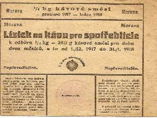 V dobách válečných a poválečných se v naší vlasti používaly potravinové (a další) lístky, které sloužily k regulované spotřebě zboží. Tyto lístky patřily rodině Vyskočilových ze Senorady: První lístky jsou z posledních let první světové války a jejich vlastník si za ně mohl koupit kávu. Další lístek je z roku 1919, tedy prvního svobodného roku po první světové válce, a byl opět určený na kávu. ...