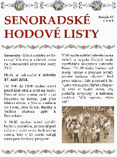 Senoradské hodové listy IV. ročník, 1. a 2. číslo. Přinášíme vám hodové listy, které obdrželi hosté na Senoradských svatováclavských krojovaných hodech. První číslo dostali všichni místní jako pozvánku nebo plakát, druhé číslo pak měli na stolech při večerní hodové zábavě v kulturním domě. Hodové listy vyšly letos poprvé, avšak jejich ročník je počítán od obnovení svatováclavských hodů v Sen...